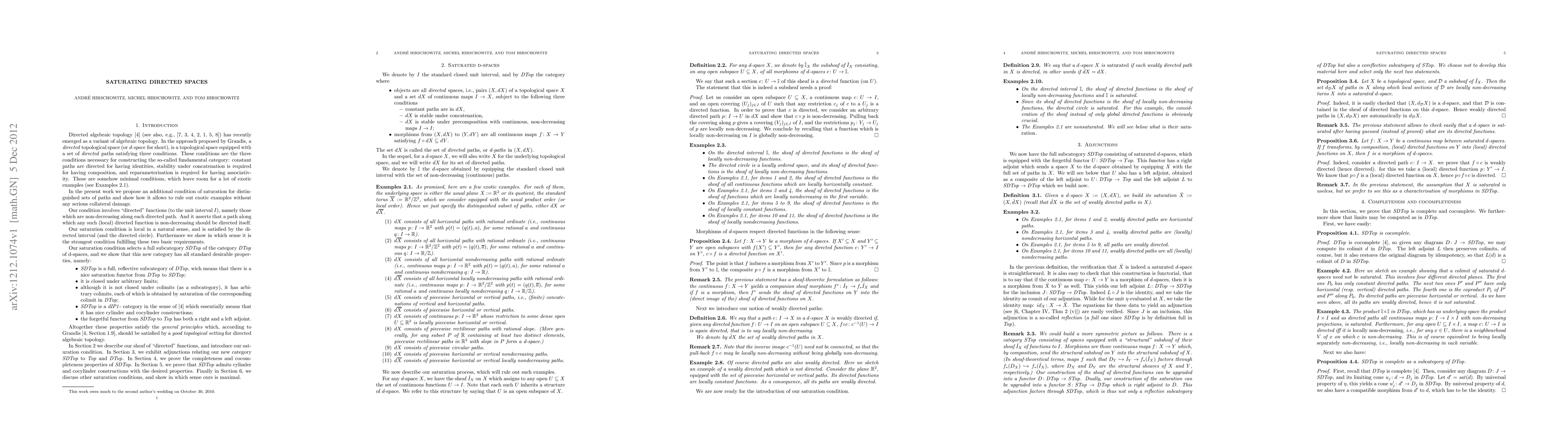 The paper proposes a saturation condition for directed spaces, refining Grandis's notion to rule out exotic examples while maintaining essential properties. This condition selects a reflective subcategory of d-spaces, closed under limits and colimits, and featuring nice adjunctions to plain topological spaces.