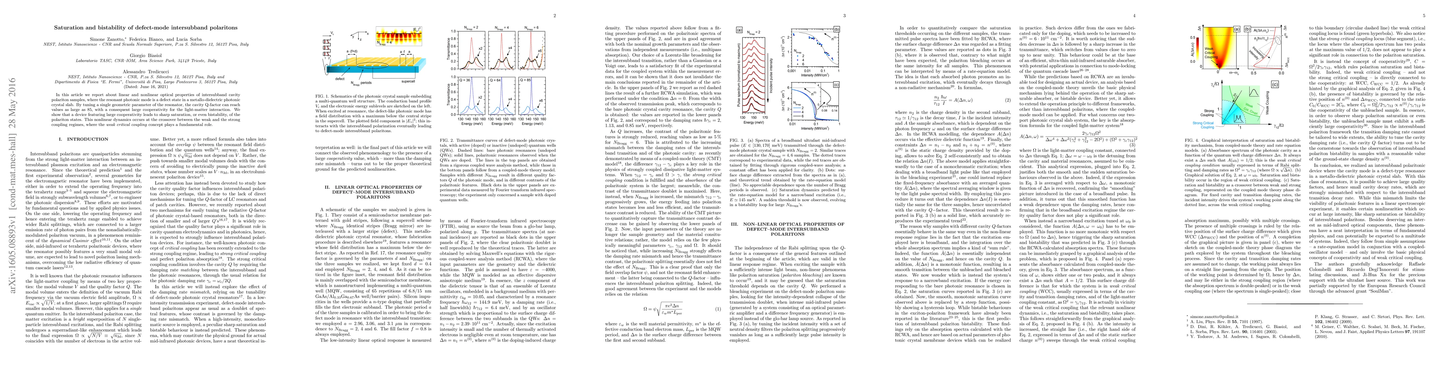 This paper investigates the optical properties of intersubband cavity polaritons with defect photonic modes in metallo-dielectric photonic crystal slabs, showing large cooperativity and sharp saturation or bistability due to strong light-matter interaction at the crossover between weak and strong coupling regimes.