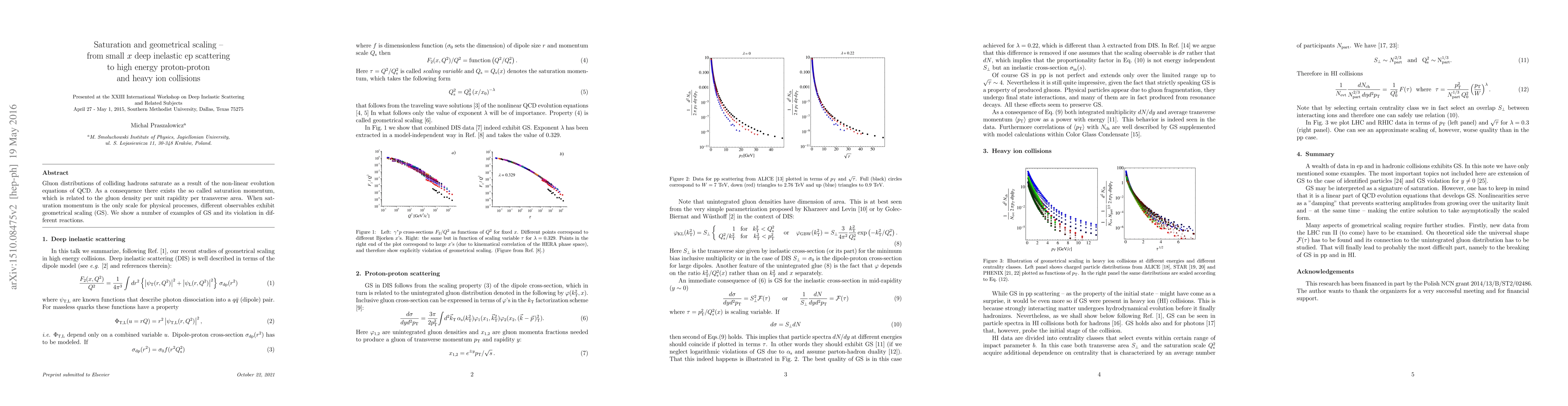 This paper explores gluon saturation in hadron collisions, demonstrating that at small $x$ values, gluon distributions reach a saturation point governed by non-linear QCD evolution. It presents evidence for geometrical scaling in various high-energy reactions, alongside instances where this scaling is violated.