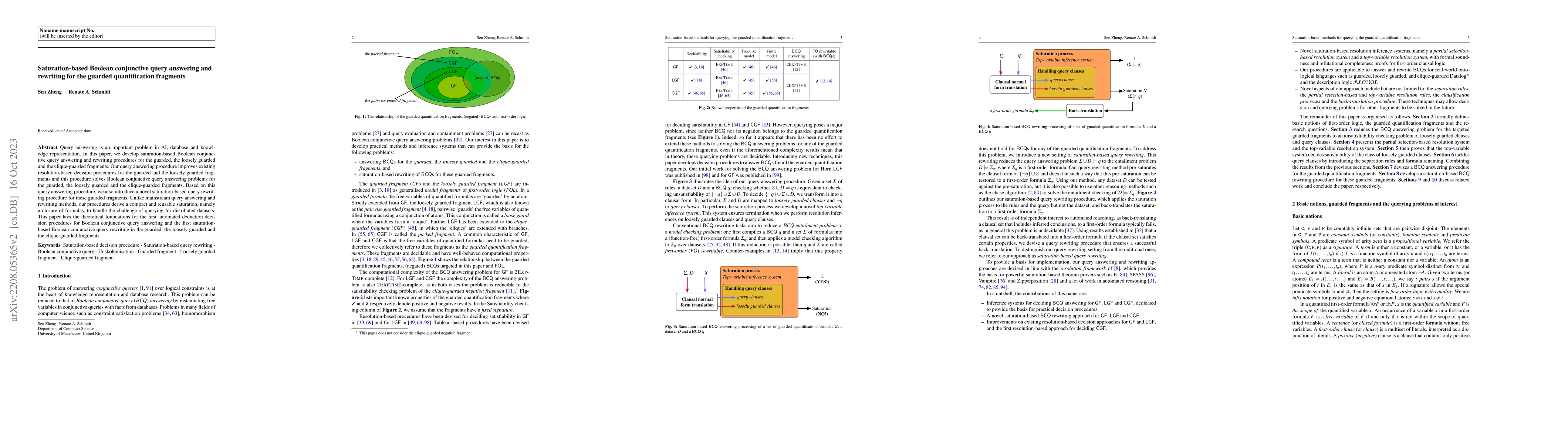 This paper presents improved saturation-based procedures for Boolean conjunctive query answering and rewriting for guarded quantification fragments, offering a compact and reusable saturation method to handle distributed datasets. It lays the theoretical foundation for automated deduction in these fragments.