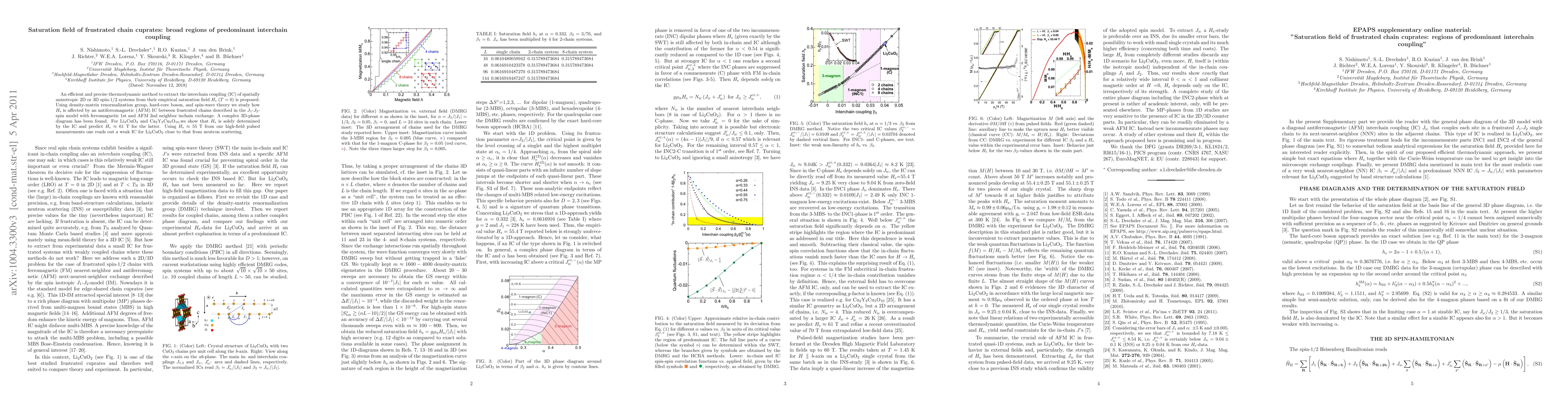 An efficient and precise thermodynamic method to extract the interchain coupling (IC) of spatially anisotropic 2D or 3D spin-1/2 systems from their empirical saturation field H_s (T=0) is proposed. Using density-matrix renormalization group, hard-core boson, and spin-wave theory we study how H_s is affected by an antiferromagnetic (AFM) IC between frustrated chains described in the J_1-J_2-spin model with ferromagnetic 1st and AFM 2nd neighbor in-chain exchange. A complex 3D-phase diagram has been found. For Li2CuO2 and Y2Ca2Cu5O10, we show that H_s is solely determined by the IC and predict H_s approx 61 T for the latter.Using H_s approx 55 T from our high-field pulsed measurements one reads out a weak IC for Li2CuO2 close to that from neutron scattering.
