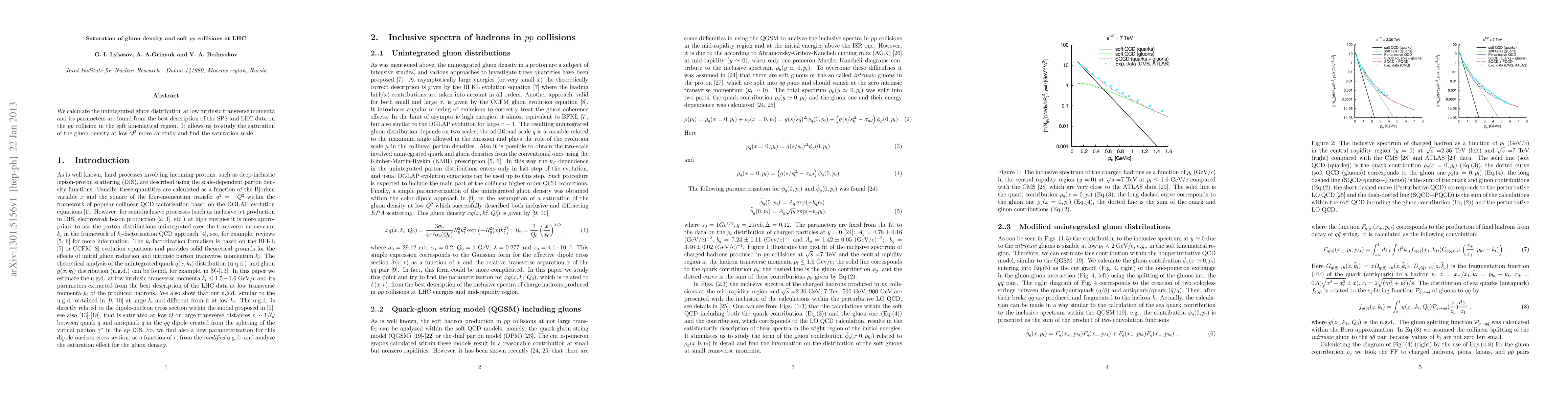 We calculate the unintegrated gluon distribution at low intrinsic transverse momenta and its parameters are found from the best description of the SPS and LHC data on the $pp$ collision in the soft kinematical region. It allows us to study the saturation of the gluon density at low $Q^2$ more carefully and find the saturation scale.