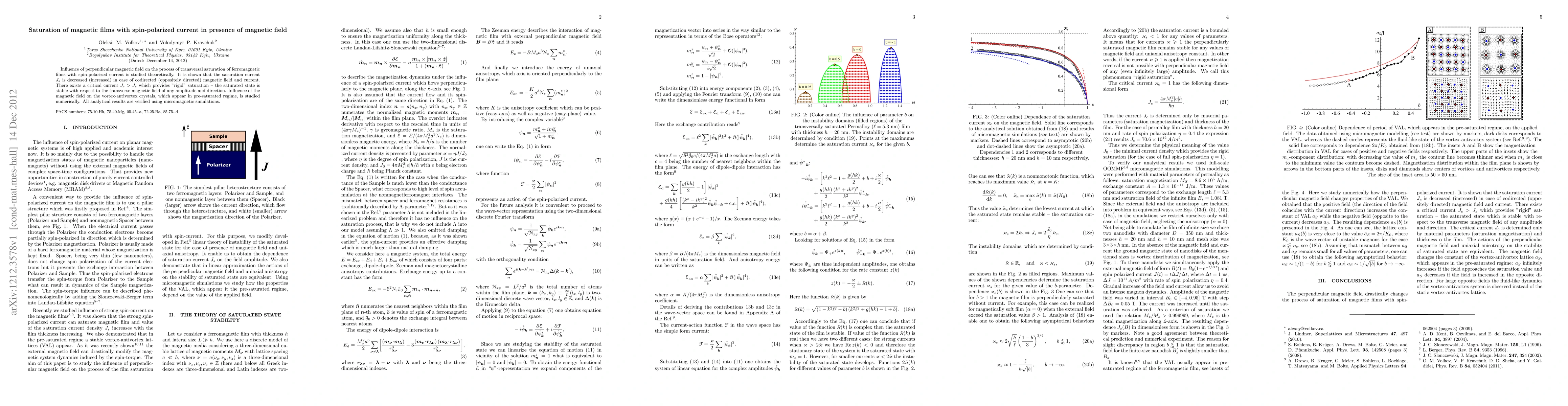 This paper theoretically investigates how a perpendicular magnetic field affects the transversal saturation of ferromagnetic films driven by spin-polarized current, showing that the saturation current varies with the field's direction relative to the current. A critical current ensures stable "rigid" saturation against any transverse magnetic field, and numerical studies complement analytical findings.