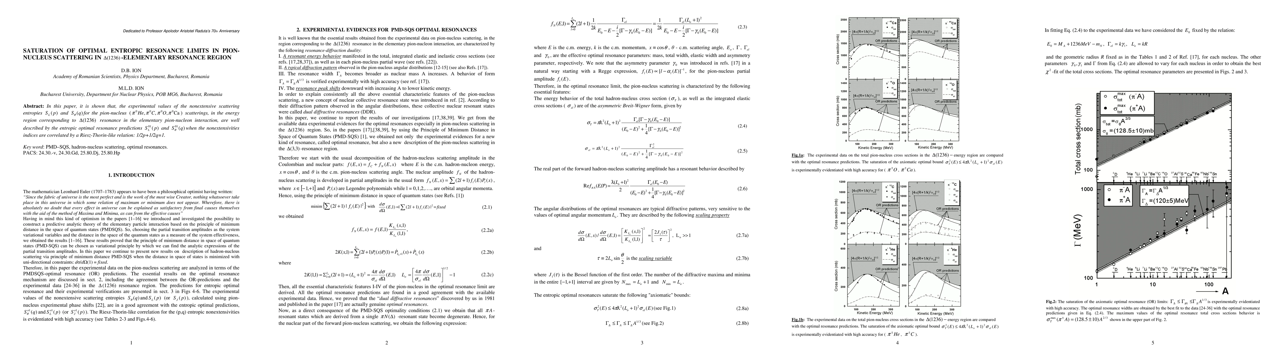 In this paper, it is shown that the experimental values of the nonextensive scattering entropies $S_L (p)$ and $S_\theta (q)$ for the pion-nucleus ($\pi^0 He, \pi^0 C, \pi^0 O, \pi^0 Ca$) scatterings, in the energy region corresponding to $\Delta (1236)$ resonance in the elementary pion-nucleon interaction, are well described by the entropic optimal resonance predictions $S_L^o1 (p)$ and $S_\theta^o1 (q)$ and when the nonextensivities indices are correlated by a Riesz-Thorin-like relation: 1/2p+1/2q=1.
