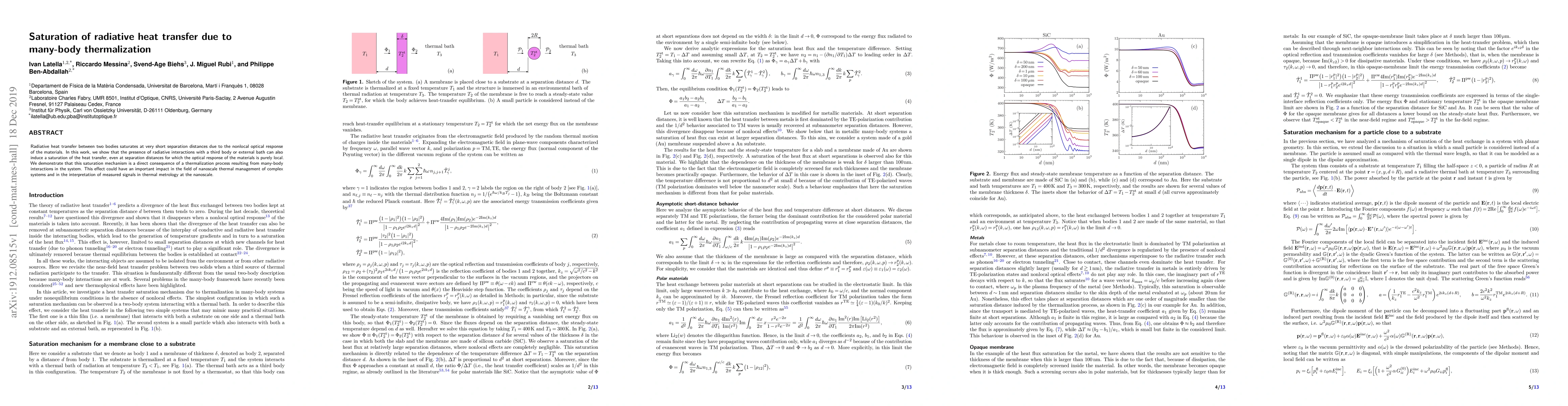 This paper demonstrates that radiative heat transfer saturation occurs due to many-body thermalization, even at distances where local optical responses dominate. This effect, induced by interactions with additional bodies or external baths, has significant implications for nanoscale thermal management and thermal metrology.