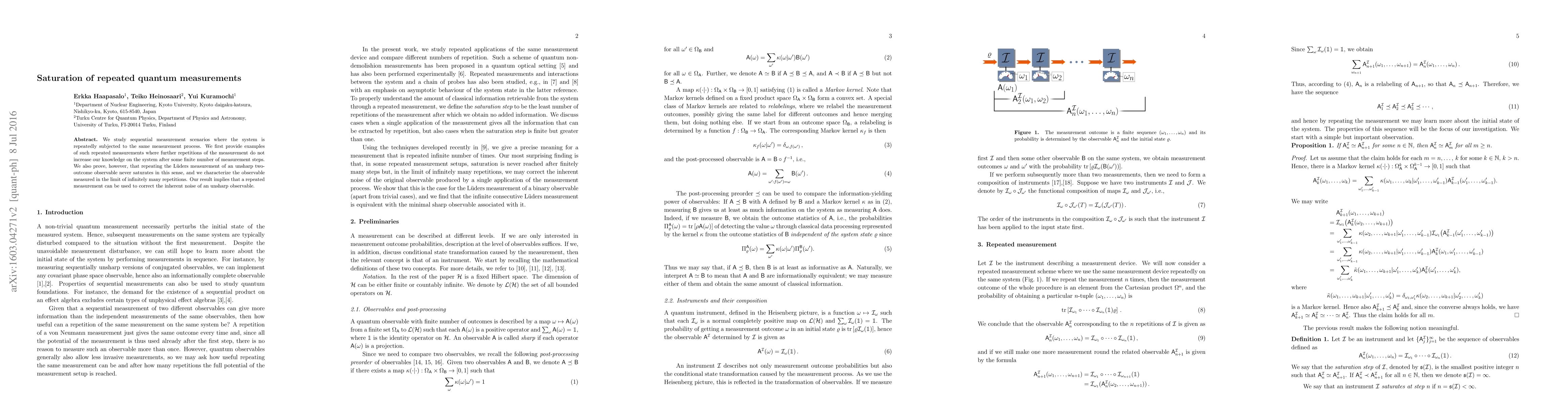 This paper investigates scenarios where repeated quantum measurements provide diminishing returns beyond a certain number of repetitions. It demonstrates that while some measurements may saturate in information gain, the repeated Lüders measurement of an unsharp observable does not saturate, allowing for noise correction in the observable over infinite repetitions.