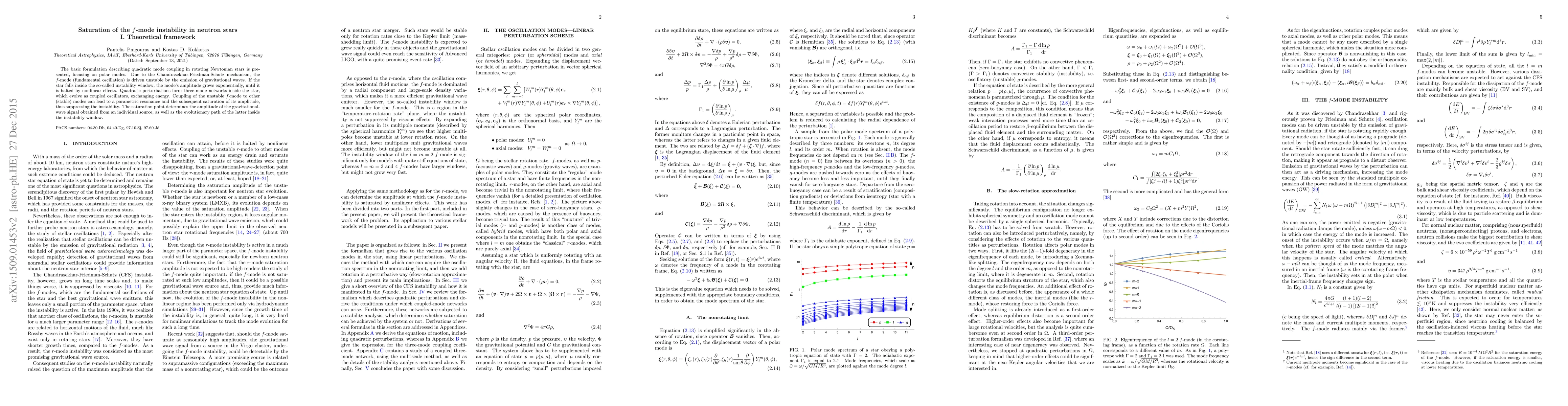 The basic formulation describing quadratic mode coupling in rotating Newtonian stars is presented, focusing on polar modes. Due to the Chandrasekhar-Friedman-Schutz mechanism, the f-mode (fundamental oscillation) is driven unstable by the emission of gravitational waves. If the star falls inside the so-called instability window, the mode's amplitude grows exponentially, until it is halted by nonlinear effects. Quadratic perturbations form three-mode networks inside the star, which evolve as coupled oscillators, exchanging energy. Coupling of the unstable f-mode to other (stable) modes can lead to a parametric resonance and the subsequent saturation of its amplitude, thus suppressing the instability. The saturation point determines the amplitude of the gravitational-wave signal obtained from an individual source, as well as the evolutionary path of the latter inside the instability window.