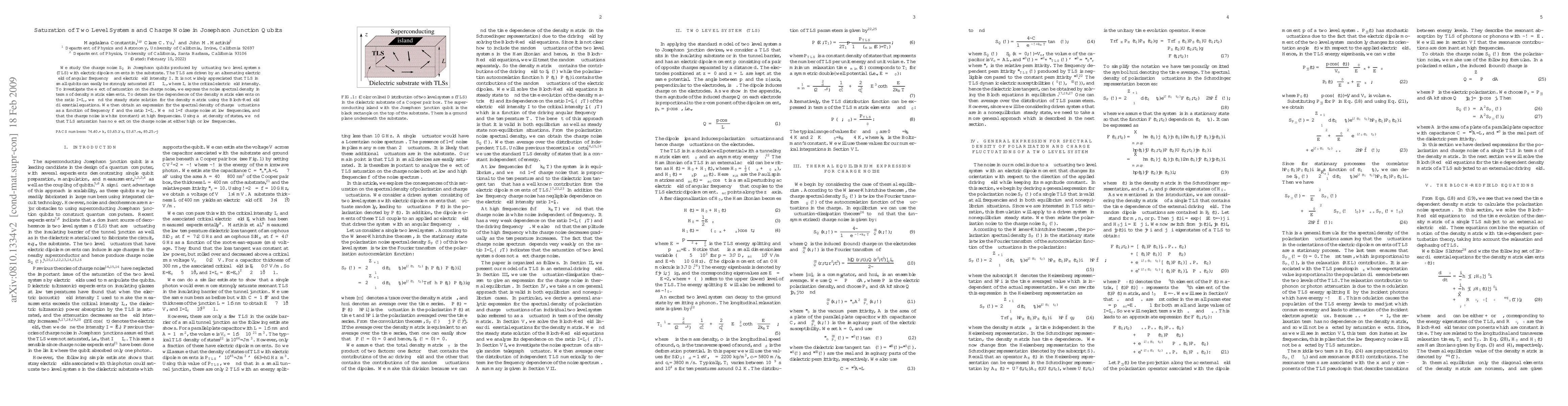 This paper investigates charge noise $S_Q$ in Josephson qubits due to fluctuating two-level systems (TLS) in the substrate, driven by an alternating electric field. It finds that TLS saturation significantly affects charge noise, leading to $1/f$ noise at low frequencies and white noise at high frequencies, with no effect from saturation on noise levels.