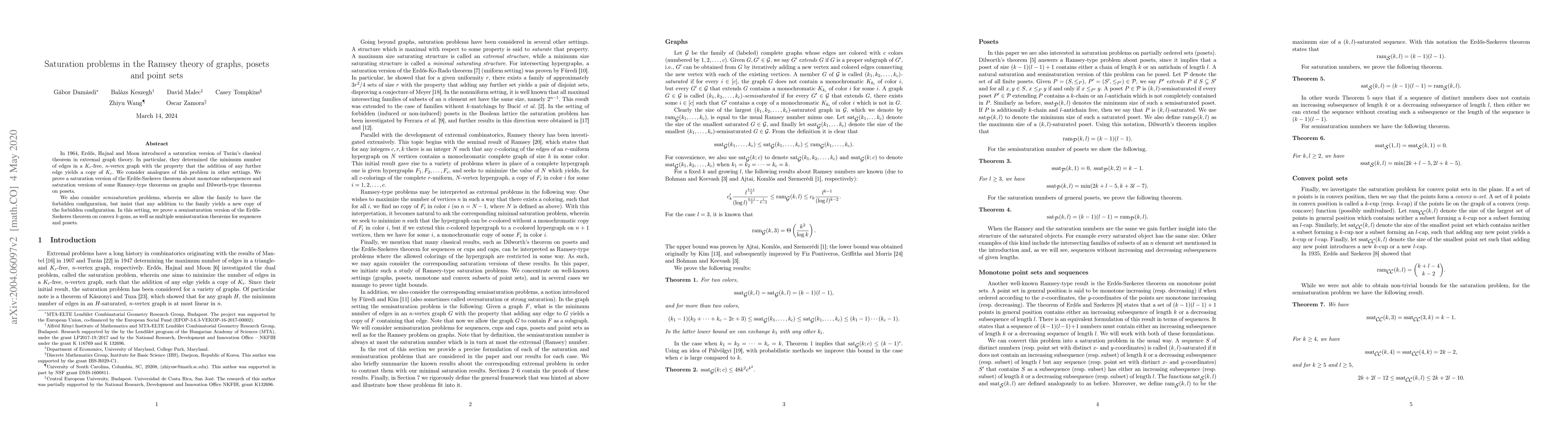 In 1964, Erd\H{o}s, Hajnal and Moon introduced a saturation version of Tur\'an's classical theorem in extremal graph theory. In particular, they determined the minimum number of edges in a $K_r$-free, $n$-vertex graph with the property that the addition of any further edge yields a copy of $K_r$. We consider analogues of this problem in other settings. We prove a saturation version of the Erd\H{o}s-Szekeres theorem about monotone subsequences and saturation versions of some Ramsey-type theorems on graphs and Dilworth-type theorems on posets. We also consider semisaturation problems, wherein we allow the family to have the forbidden configuration, but insist that any addition to the family yields a new copy of the forbidden configuration. In this setting, we prove a semisaturation version of the Erd\H{o}s-Szekeres theorem on convex $k$-gons, as well as multiple semisaturation theorems for sequences and posets.