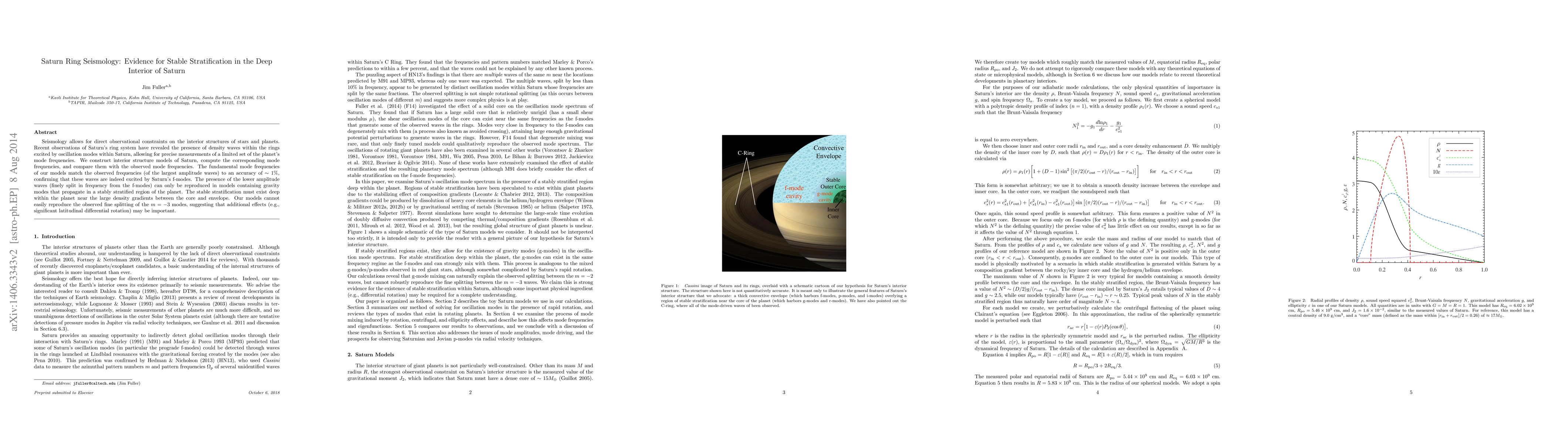 This paper uses Saturn's ring oscillations to infer the planet's interior structure, finding that stable stratification exists deep within Saturn, near the core-envelope boundary. The observed density waves match predicted f-mode frequencies, suggesting additional factors like latitudinal differential rotation may influence the finer details.