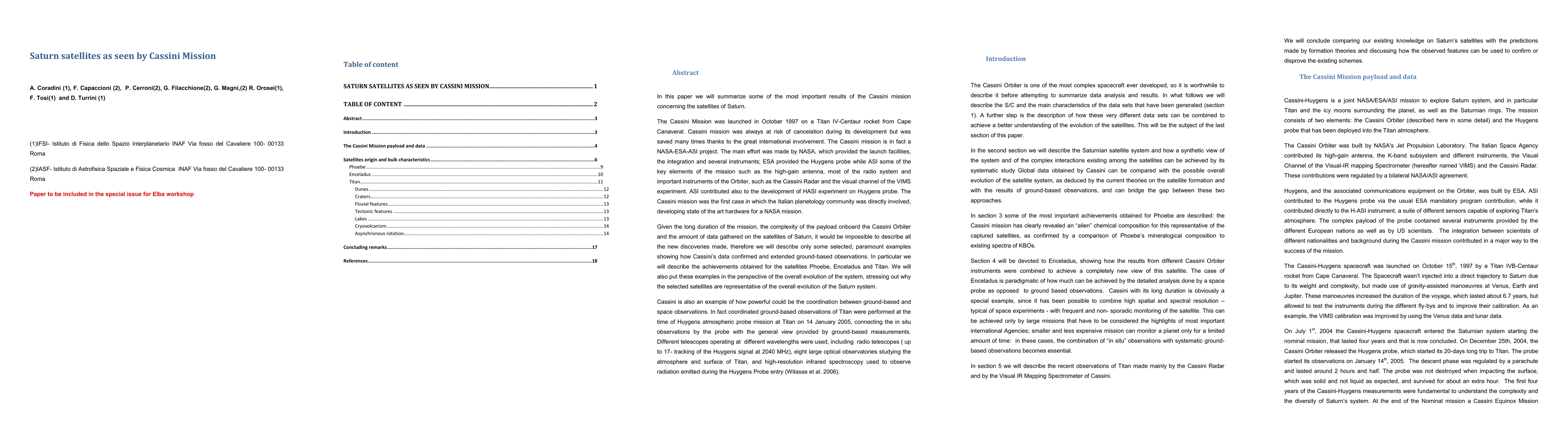 This paper highlights key findings from the Cassini mission regarding Saturn's satellites, focusing on Phoebe, Enceladus, and Titan. It emphasizes how Cassini's data confirmed and expanded upon ground-based observations, illustrating the broader evolution of the Saturn system.