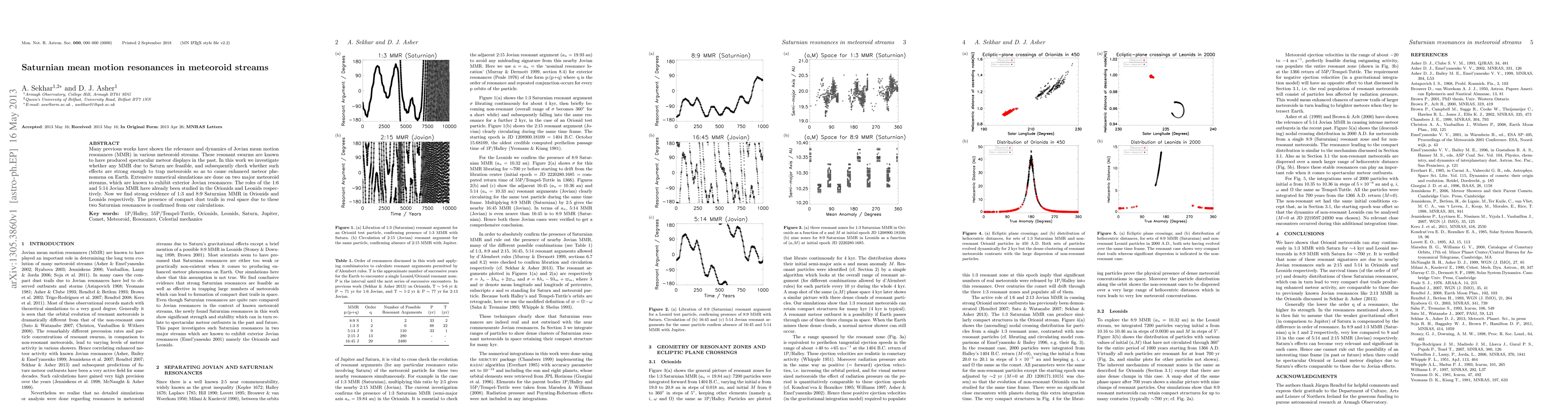 This work presents a comprehensive numerical investigation into Saturnian MMR in meteoroid streams, confirming the presence of 1:3 MMR in Orionids and 8:9 MMR in Leonids, and ruling out nearby Jovian MMR influences.