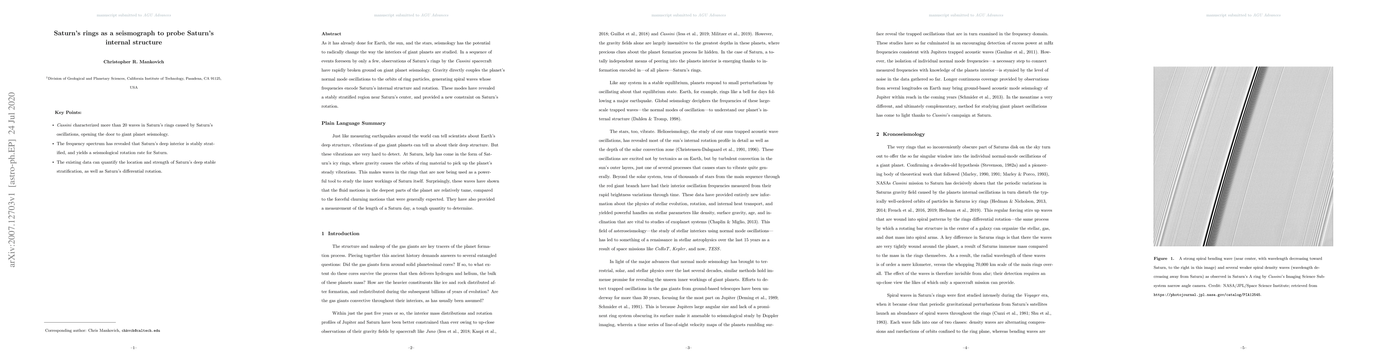This paper explores how Saturn's rings can serve as a seismograph to reveal the planet's internal structure and rotation through the gravitational coupling of its normal mode oscillations to the orbits of ring particles, offering new insights into Saturn's stratified interior.