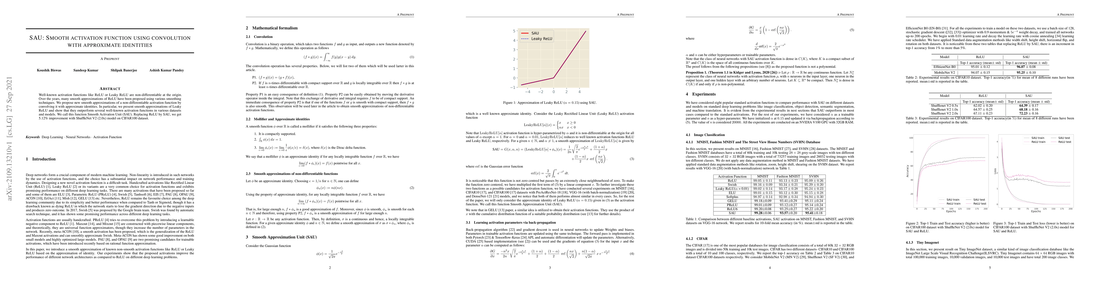 The paper proposes a new smooth activation function called Smooth Activation Unit (SAU) by convolving non-differentiable activation functions like Leaky ReLU with approximate identities. SAU outperforms traditional activation functions in various datasets and models, achieving a 5.12% improvement in ShuffleNet V2 (2.0x) on the CIFAR100 dataset.