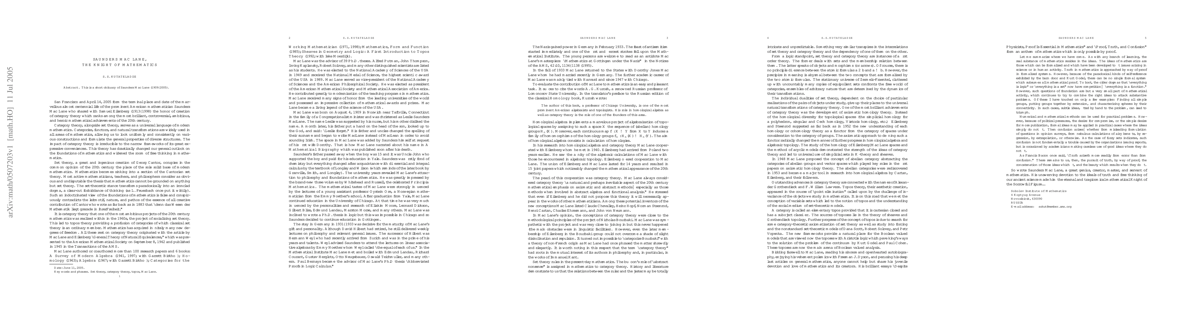 This is a short obituary of Saunders Mac Lane (1909--2005).