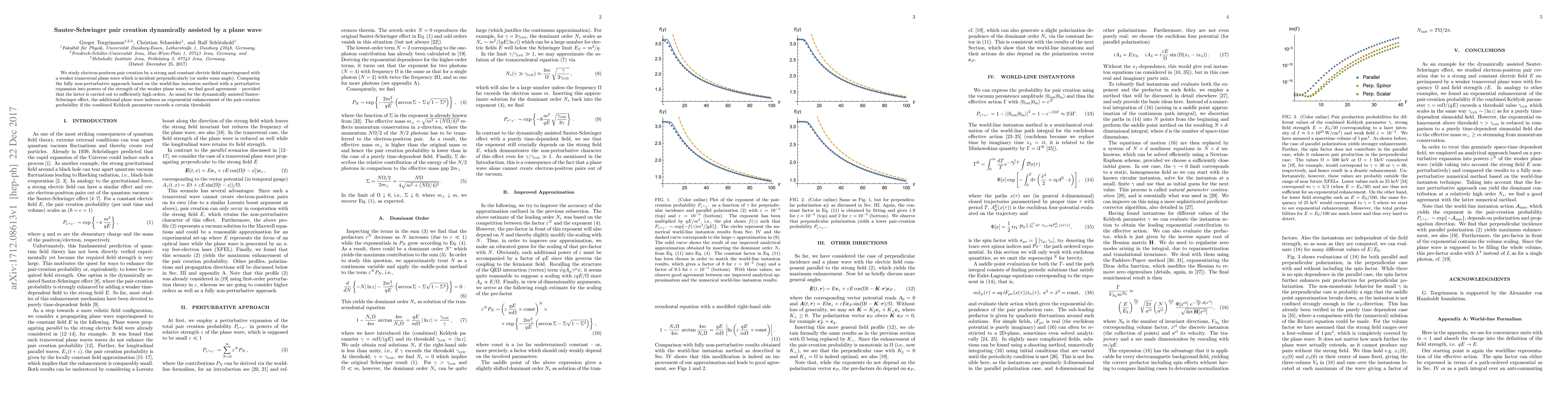 Summary: This study investigates electron-positron pair creation in a strong electric field enhanced by a transversal plane wave, showing good agreement between non-perturbative and perturbative methods, with significant exponential increase in pair-creation probability when the combined Keldysh parameter surpasses a critical value.