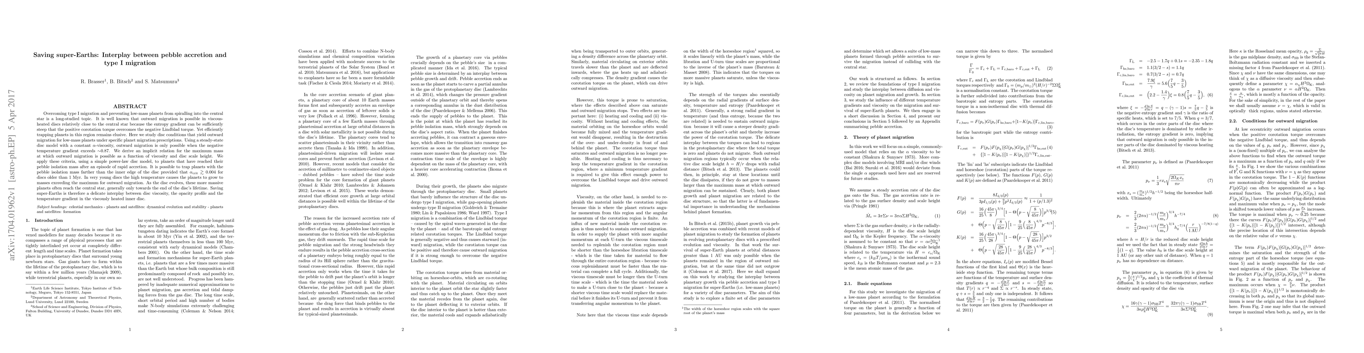 Overcoming type I migration and preventing low-mass planets from spiralling into the central star is a long-studied topic. It is well known that outward migration is possible in viscous-heated discs relatively close to the central star because the entropy gradient can be sufficiently steep that the positive corotation torque overcomes the negative Lindblad torque. Yet efficiently trapping planets in this region remains elusive. Here we study disc conditions that yield outward migration for low-mass planets under specific planet migration prescriptions. Using a steady-state disc model with a constant alpha-viscosity, outward migration is only possible when the negative temperature gradient exceeds ~0.87. We derive an implicit relation for the maximum mass at which outward migration is possible as a function of viscosity and disc scale height. We apply these criteria, using a simple power-law disc model, to planets that have reached their pebble isolation mass after an episode of rapid accretion. It is possible to trap planets with the pebble isolation mass farther than the inner edge of the disc provided that alpha_crit >~ 0.004 for discs older than 1 Myr. In very young discs the high temperature causes the planets to grow to masses exceeding the maximum for outward migration. As the disc evolves, these more massive planets often reach the central star, generally only towards the end of the disc's lifetime. Saving super-Earths is therefore a delicate interplay between disc viscosity, the opacity profile and the temperature gradient in the viscously heated inner disc.