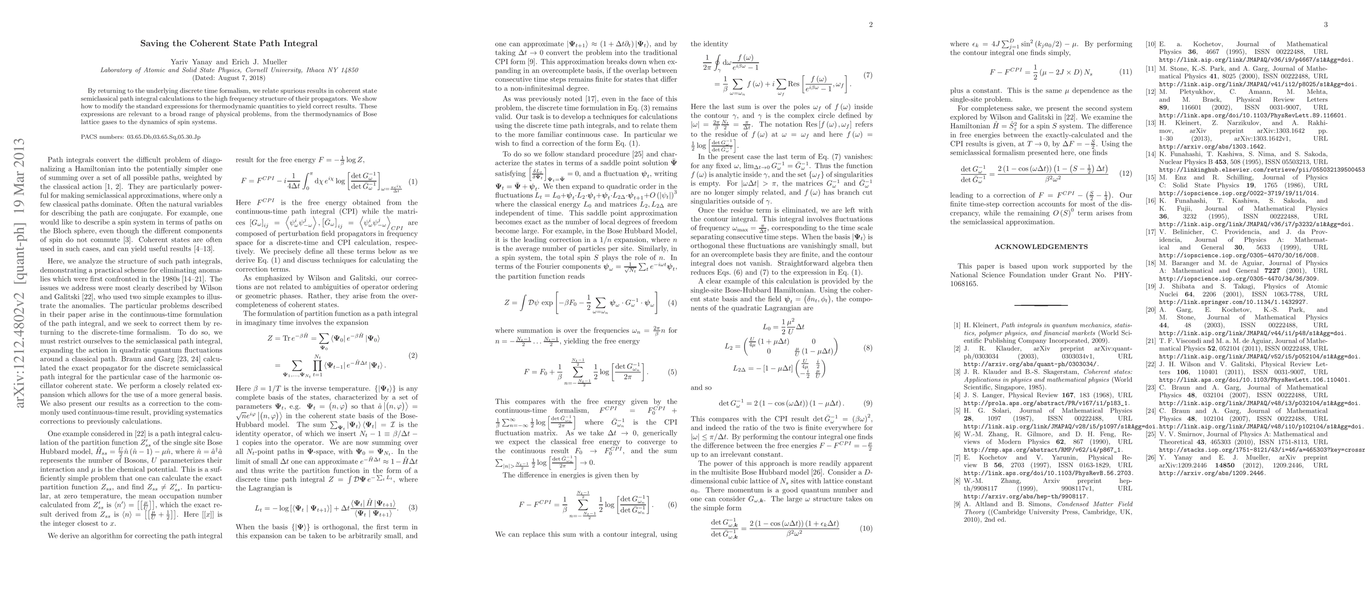 This paper addresses spurious results in coherent state path integral calculations by revisiting the discrete time formalism, demonstrating how to correct these errors through modifications in thermodynamic quantity expressions, which are applicable across various physical systems.