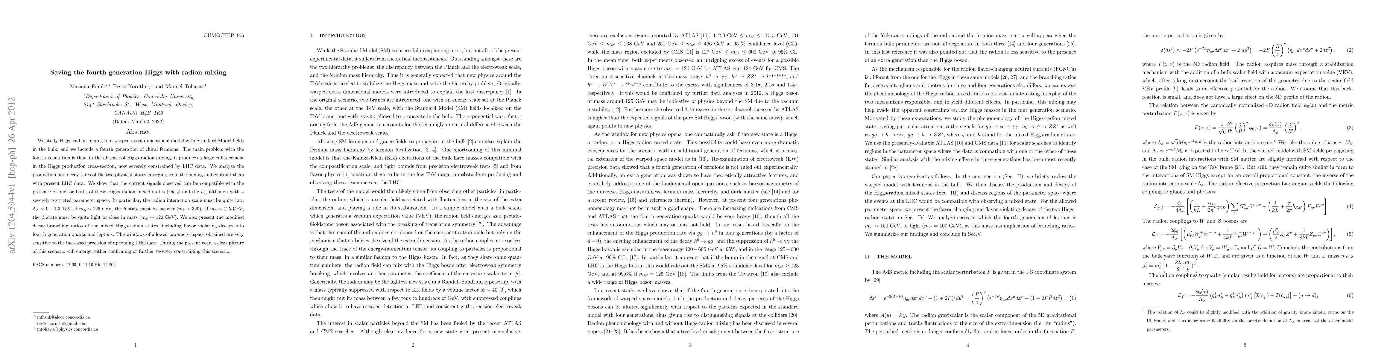 This paper investigates Higgs-radion mixing in a warped extra-dimensional model with a fourth generation of fermions to address the issue of enhanced Higgs production cross-section in its absence. It finds that mixing can reconcile current LHC data with the presence of mixed Higgs-radion states, though within a constrained parameter space.