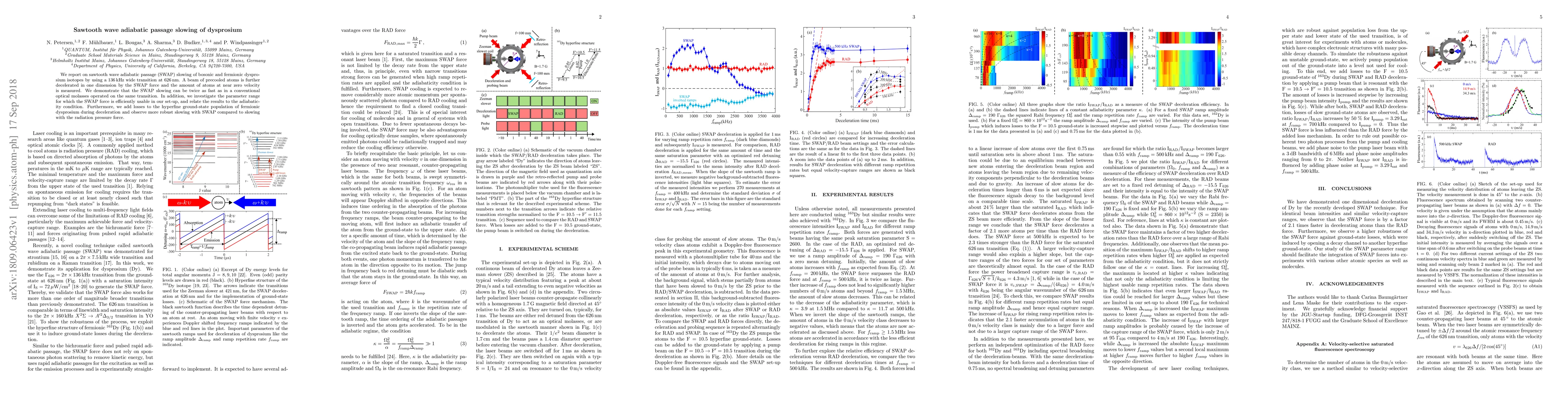 This paper reports on the use of sawtooth wave adiabatic passage (SWAP) to decelerate bosonic and fermionic dysprosium isotopes at a 136 kHz wide transition, achieving twice the slowing speed compared to conventional optical molasses. It investigates the efficiency of SWAP under various parameters and finds more robust deceleration for fermionic dysprosium despite increased ground-state losses.