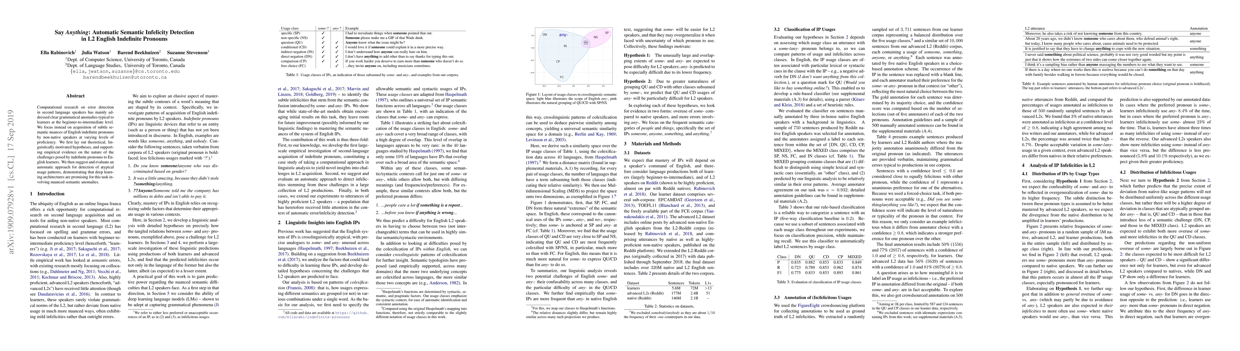 Researchers develop an automatic system to detect subtle semantic errors in non-native English speakers' use of indefinite pronouns, a common challenge for L2 learners at various proficiency levels. The study uses deep learning architectures to identify nuanced anomalies in pronunciation usage.
