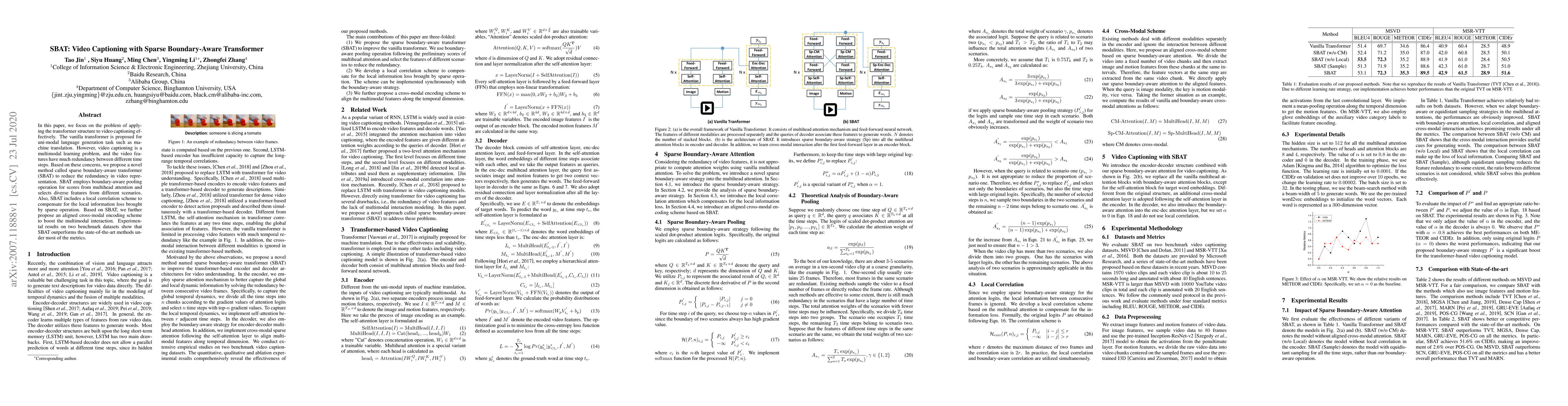 The paper introduces the Sparse Boundary-Aware Transformer (SBAT) to improve video captioning by reducing redundancy in video features through boundary-aware pooling and local correlation schemes. Experimental results demonstrate that SBAT outperforms existing methods on benchmark datasets.