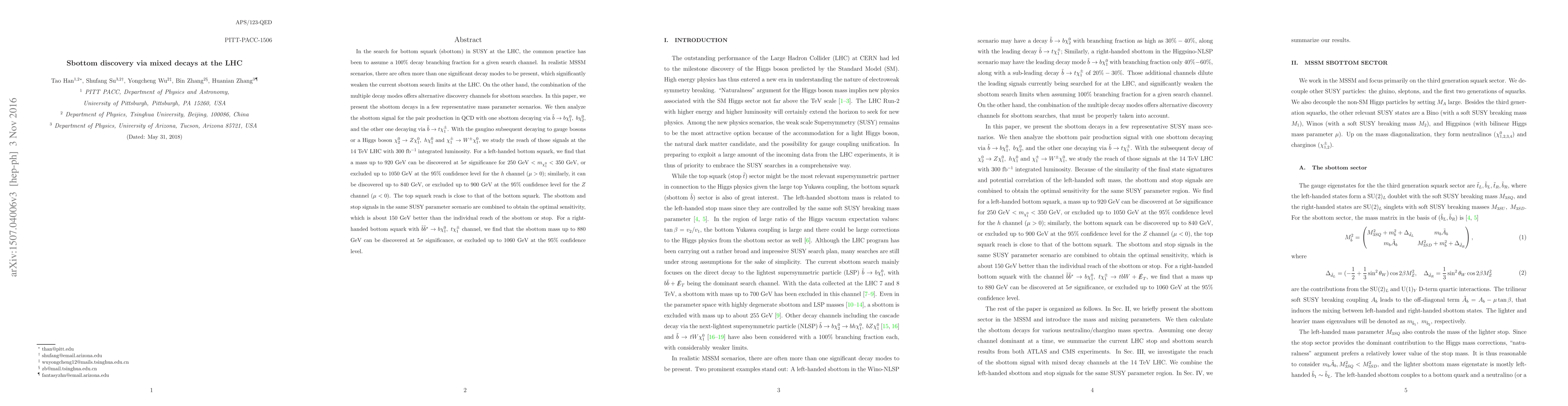 This paper explores the discovery potential of bottom squarks (sbottoms) at the LHC by considering mixed decay channels, which enhances search sensitivity beyond traditional single-channel approaches. The study finds that a left-handed sbottom can be discovered up to 920 GeV or excluded up to 1050 GeV, depending on decay modes, and a right-handed sbottom up to 880 GeV or excluded up to 1060 GeV.