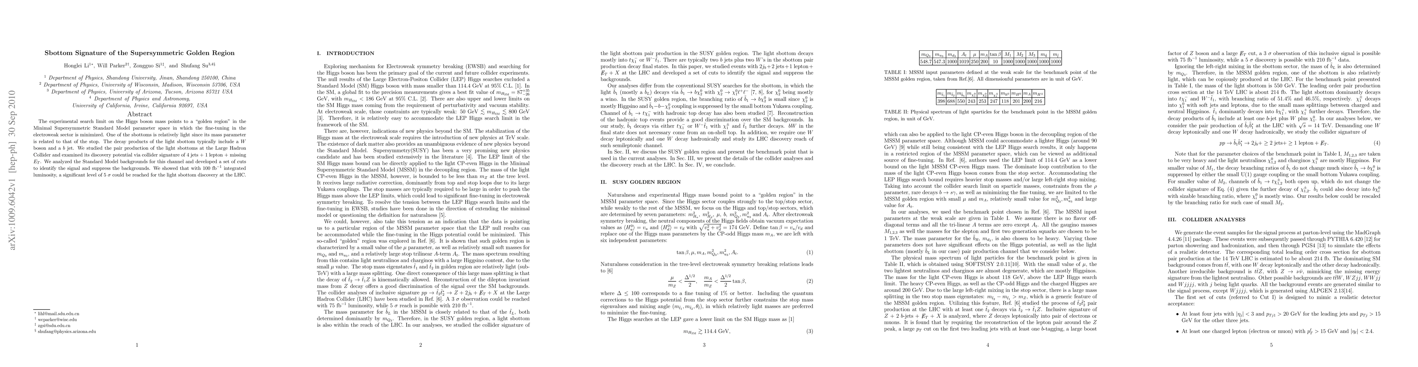 The experimental search limit on the Higgs boson mass points to a "golden region" in the Minimal Supersymmetric Standard Model parameter space in which the fine-tuning in the electroweak sector is minimized. One of the sbottoms is relatively light since its mass parameter is related to that of the stop. The decay products of the light sbottom typically include a W boson and a b jet. We studied the pair production of the light sbottoms at the Large Hadron Collider and examined its discovery potential via collider signature of 4 jets + 1 lepton + missing E_T. We analyzed the Standard Model backgrounds for this channel and developed a set of cuts to identify the signal and suppress the backgrounds. We showed that with 100 fb^{-1} integrated luminosity, a significant level of 5 sigma could be reached for the light sbottom discovery at the LHC.