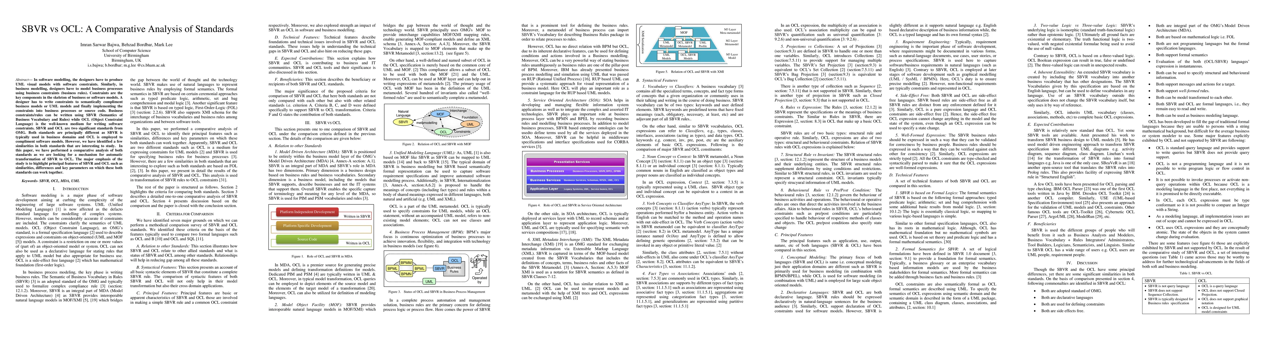 A comparative analysis of SBVR and OCL standards for business and software modeling reveals similarities and differences between them, with a focus on automatic transformation mechanism.