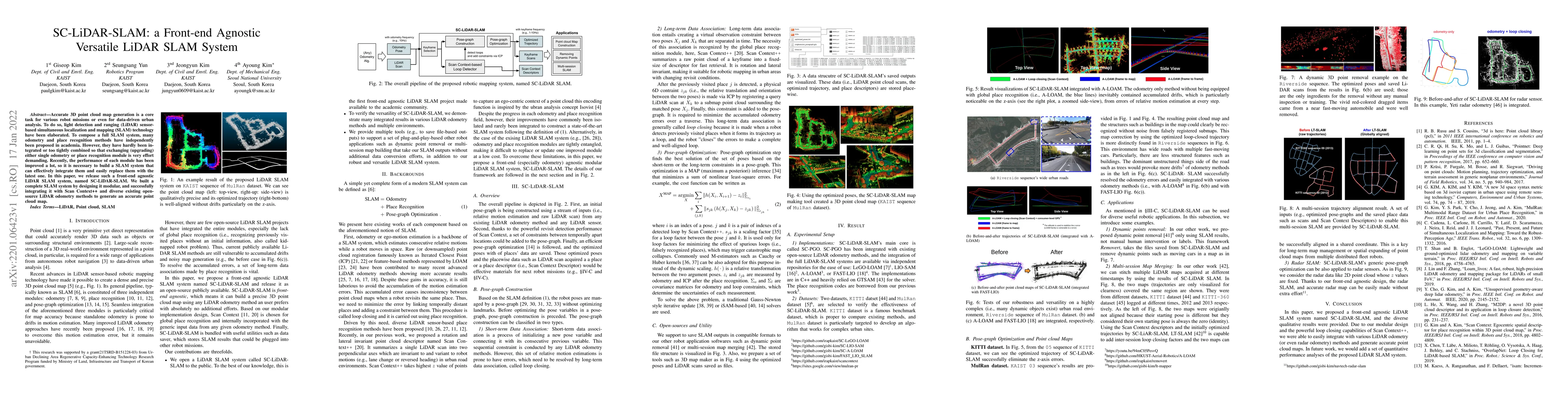 SC-LiDAR-SLAM presents a modular, front-end agnostic LiDAR SLAM system designed to integrate various odometry and place recognition methods, facilitating easy upgrades and enhancing the flexibility and accuracy of 3D point cloud map generation for robotic and urban analysis applications.