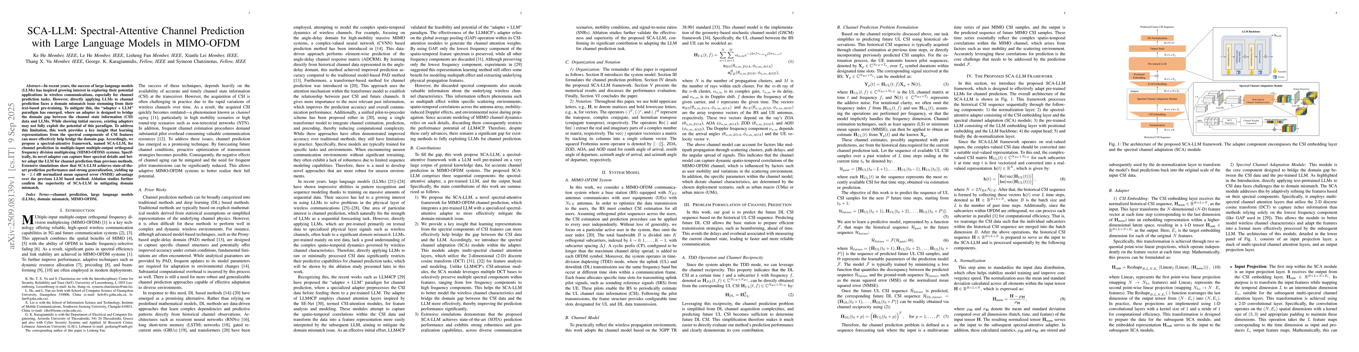 In recent years, the success of large language models (LLMs) has inspired growing interest in exploring their potential applications in wireless communications, especially for channel prediction tasks. However, directly applying LLMs to channel prediction faces a domain mismatch issue stemming from their text-based pre-training. To mitigate this, the ``adapter + LLM" paradigm has emerged, where an adapter is designed to bridge the domain gap between the channel state information (CSI) data and LLMs. While showing initial success, existing adapters may not fully exploit the potential of this paradigm. To address this limitation, this work provides a key insight that learning representations from the spectral components of CSI features can more effectively help bridge the domain gap. Accordingly, we propose a spectral-attentive framework, named SCA-LLM, for channel prediction in multiple-input multiple-output orthogonal frequency division multiplexing (MIMO-OFDM) systems. Specifically, its novel adapter can capture finer spectral details and better adapt the LLM for channel prediction than previous methods. Extensive simulations show that SCA-LLM achieves state-of-the-art prediction performance and strong generalization, yielding up to $-2.4~\text{dB}$ normalized mean squared error (NMSE) advantage over the previous LLM based method. Ablation studies further confirm the superiority of SCA-LLM in mitigating domain mismatch.