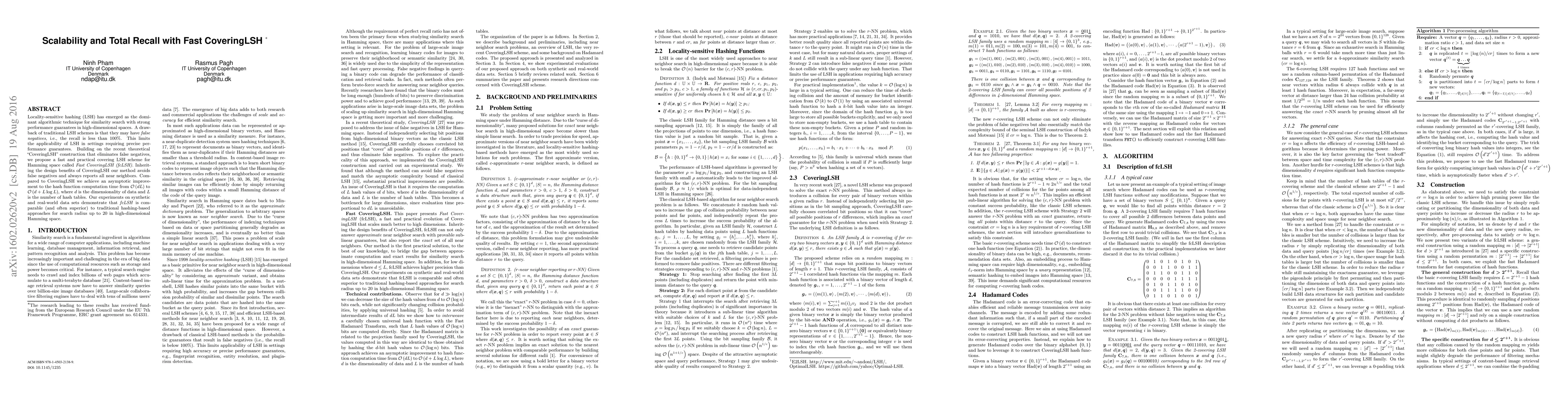 This paper proposes Fast CoveringLSH (fcLSH), a new LSH scheme that eliminates false negatives while improving computational efficiency. Compared to traditional LSH, fcLSH achieves better performance for high-dimensional Hamming space similarity searches, demonstrating comparable or superior results in experiments.
