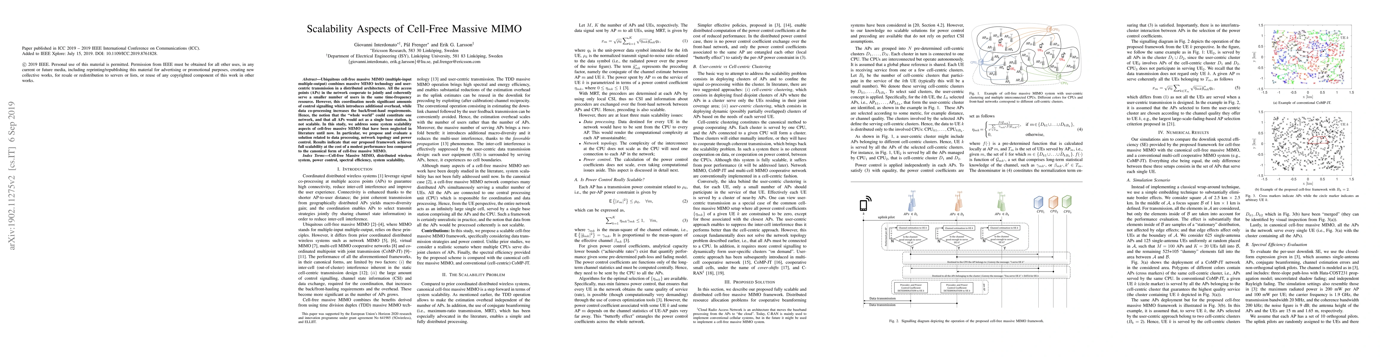 Ubiquitous cell-free massive MIMO (multiple-input multiple-output) combines massive MIMO technology and user-centric transmission in a distributed architecture. All the access points (APs) in the network cooperate to jointly and coherently serve a smaller number of users in the same time-frequency resource. However, this coordination needs significant amounts of control signalling which introduces additional overhead, while data co-processing increases the back/front-haul requirements. Hence, the notion that the "whole world" could constitute one network, and that all APs would act as a single base station, is not scalable. In this study, we address some system scalability aspects of cell-free massive MIMO that have been neglected in literature until now. In particular, we propose and evaluate a solution related to data processing, network topology and power control. Results indicate that our proposed framework achieves full scalability at the cost of a modest performance loss compared to the canonical form of cell-free massive MIMO.