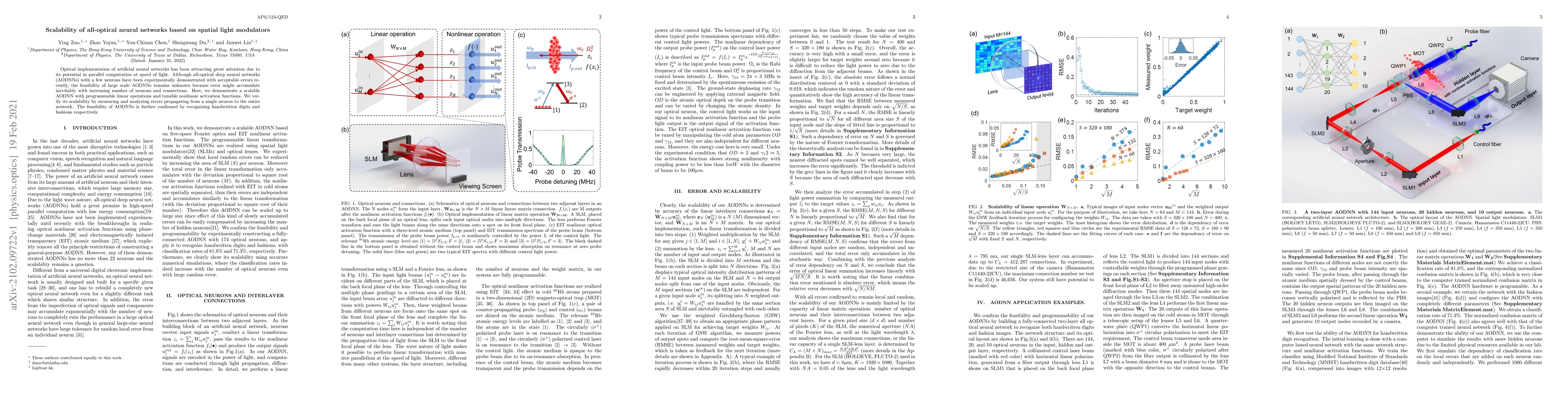 This paper demonstrates a scalable all-optical deep neural network (AODNN) using spatial light modulators, addressing the challenge of error accumulation in large networks. The study verifies scalability through error propagation analysis and successful recognition of handwritten digits and fashion items.