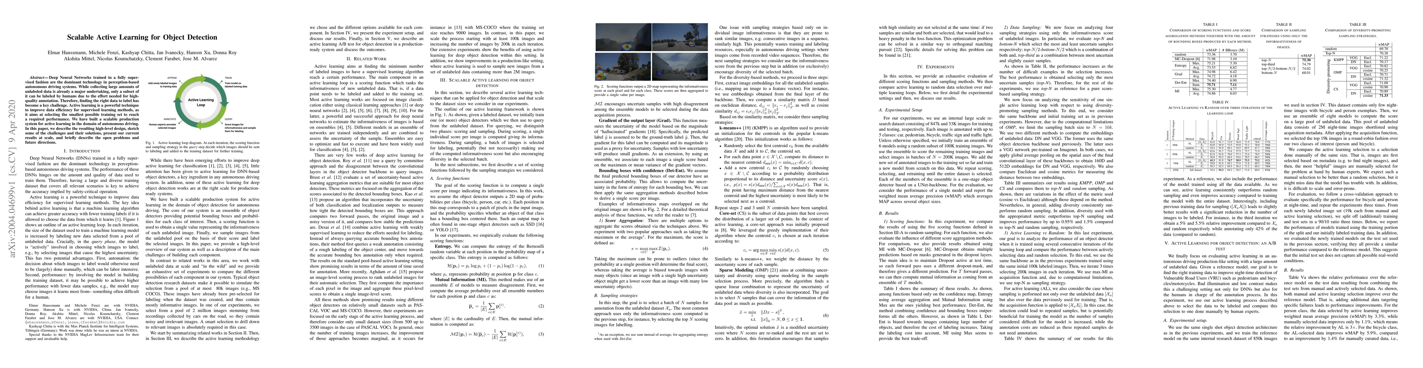 This paper presents a scalable active learning system for object detection in autonomous driving, aiming to efficiently select the most informative data for labeling, thereby reducing the need for extensive human annotation. The authors discuss the system's design, challenges, and initial results, while also highlighting future research directions.