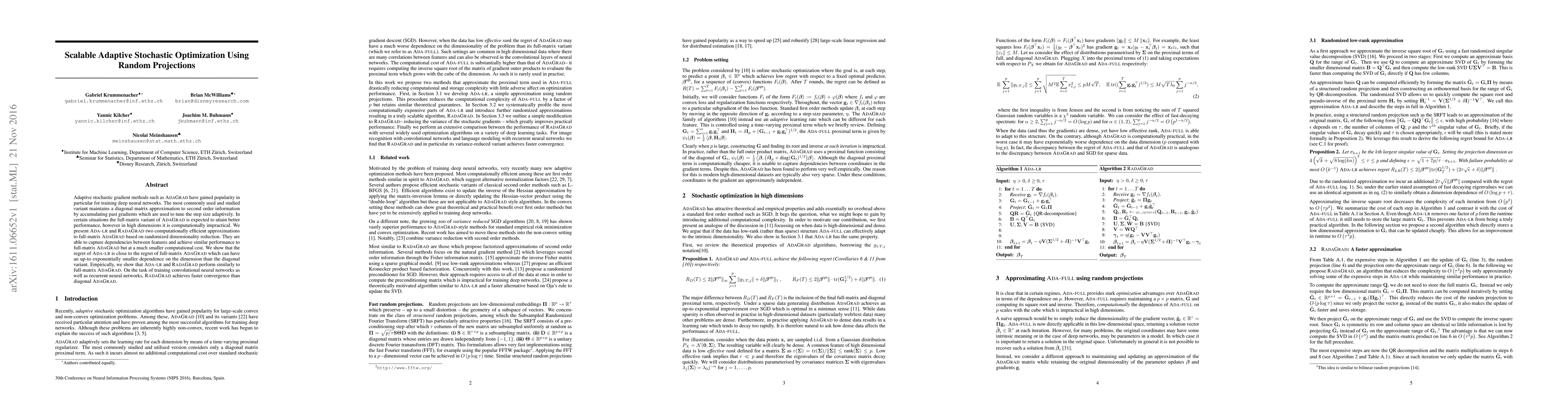 Adaptive stochastic gradient methods such as AdaGrad have gained popularity in particular for training deep neural networks. The most commonly used and studied variant maintains a diagonal matrix approximation to second order information by accumulating past gradients which are used to tune the step size adaptively. In certain situations the full-matrix variant of AdaGrad is expected to attain better performance, however in high dimensions it is computationally impractical. We present Ada-LR and RadaGrad two computationally efficient approximations to full-matrix AdaGrad based on randomized dimensionality reduction. They are able to capture dependencies between features and achieve similar performance to full-matrix AdaGrad but at a much smaller computational cost. We show that the regret of Ada-LR is close to the regret of full-matrix AdaGrad which can have an up-to exponentially smaller dependence on the dimension than the diagonal variant. Empirically, we show that Ada-LR and RadaGrad perform similarly to full-matrix AdaGrad. On the task of training convolutional neural networks as well as recurrent neural networks, RadaGrad achieves faster convergence than diagonal AdaGrad.