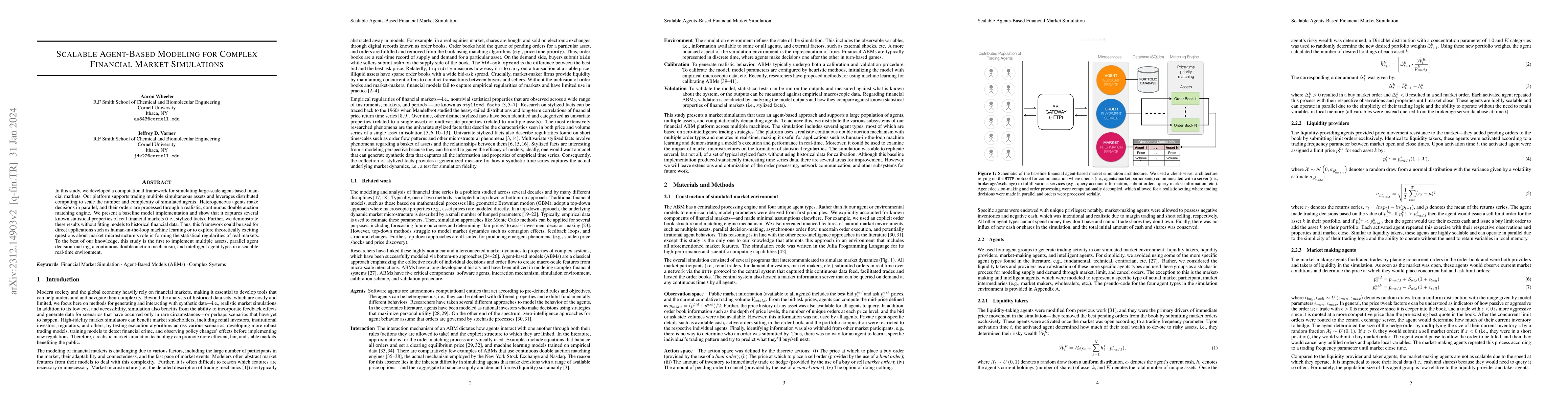 This paper introduces a scalable agent-based modeling framework for simulating large-scale financial markets, featuring parallel processing of heterogeneous agents and a continuous double auction mechanism. The model captures known statistical properties of real markets without relying on historical data, offering potential applications in machine learning and market microstructure research.