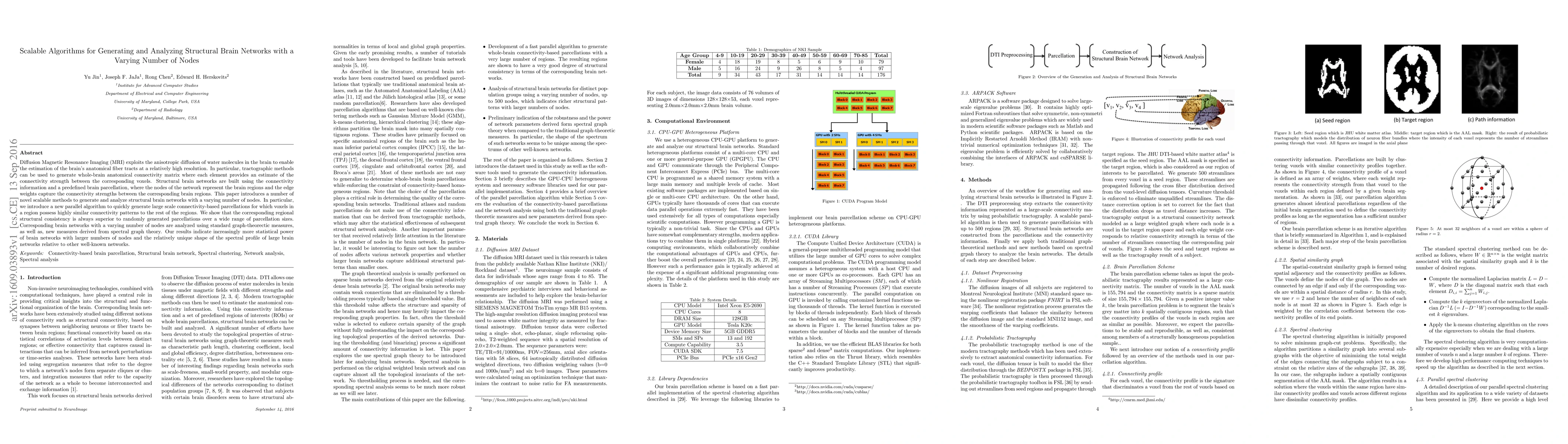 The paper introduces scalable methods for generating and analyzing structural brain networks using diffusion MRI and tractography, focusing on parallel algorithms for connectivity-based brain parcellation and spectral graph theory analysis.