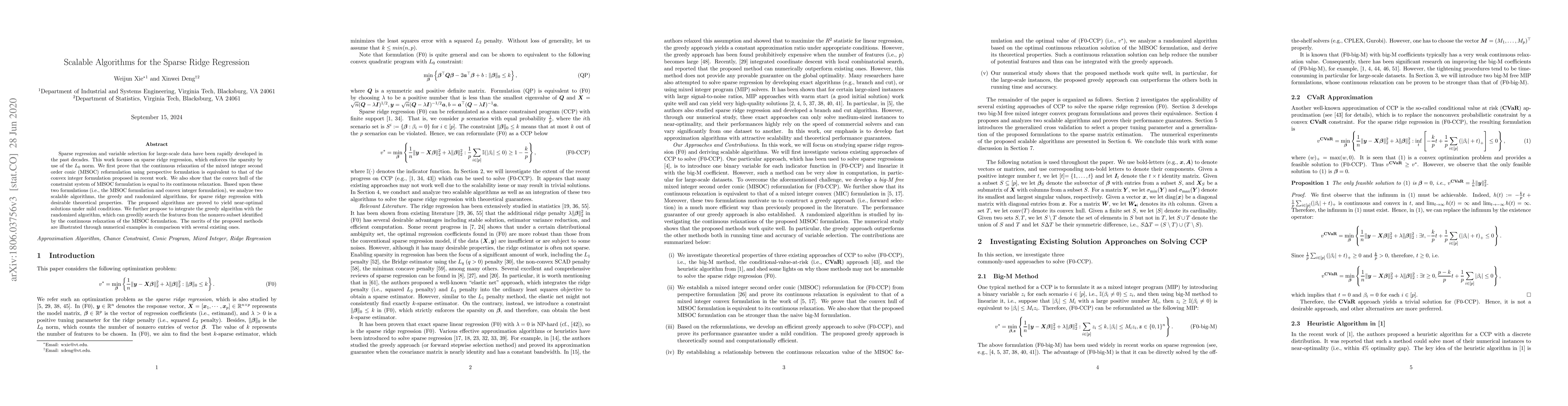 This paper develops scalable algorithms for sparse ridge regression, a technique that combines feature selection with regression analysis, and proves their near-optimal performance under certain conditions.