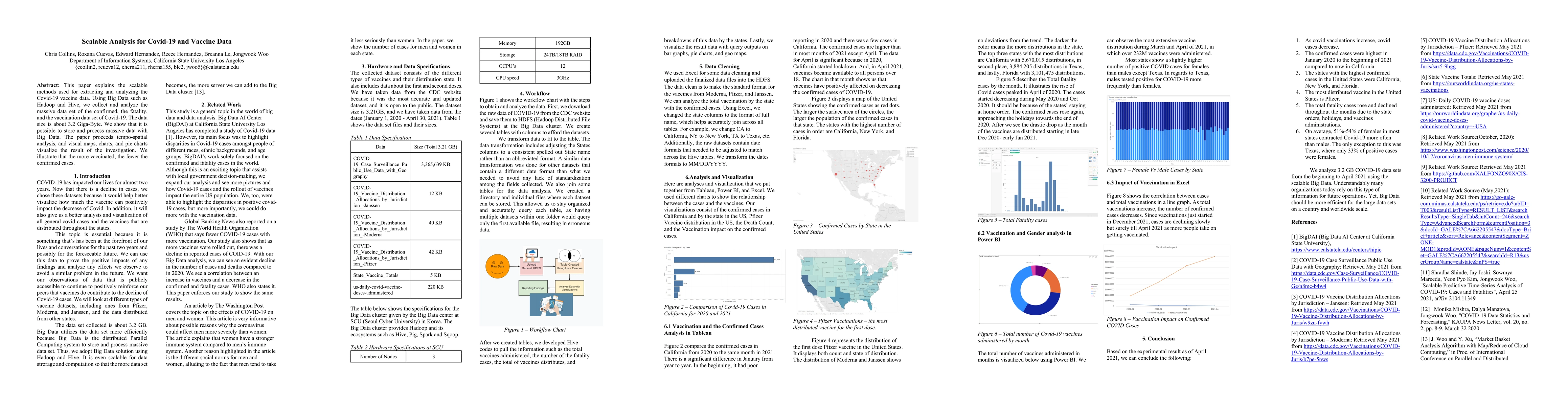 The paper presents scalable methods for analyzing COVID-19 vaccine data using Big Data technologies like Hadoop and Hive, revealing a correlation between vaccination rates and confirmed cases.