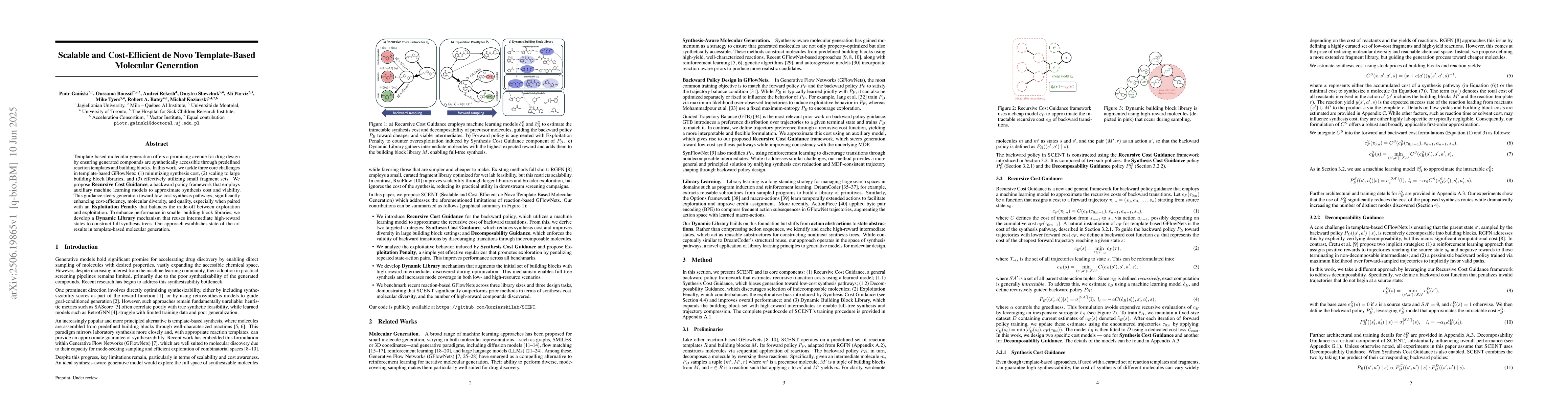 Template-based molecular generation offers a promising avenue for drug design by ensuring generated compounds are synthetically accessible through predefined reaction templates and building blocks. In this work, we tackle three core challenges in template-based GFlowNets: (1) minimizing synthesis cost, (2) scaling to large building block libraries, and (3) effectively utilizing small fragment sets. We propose \textbf{Recursive Cost Guidance}, a backward policy framework that employs auxiliary machine learning models to approximate synthesis cost and viability. This guidance steers generation toward low-cost synthesis pathways, significantly enhancing cost-efficiency, molecular diversity, and quality, especially when paired with an \textbf{Exploitation Penalty} that balances the trade-off between exploration and exploitation. To enhance performance in smaller building block libraries, we develop a \textbf{Dynamic Library} mechanism that reuses intermediate high-reward states to construct full synthesis trees. Our approach establishes state-of-the-art results in template-based molecular generation.