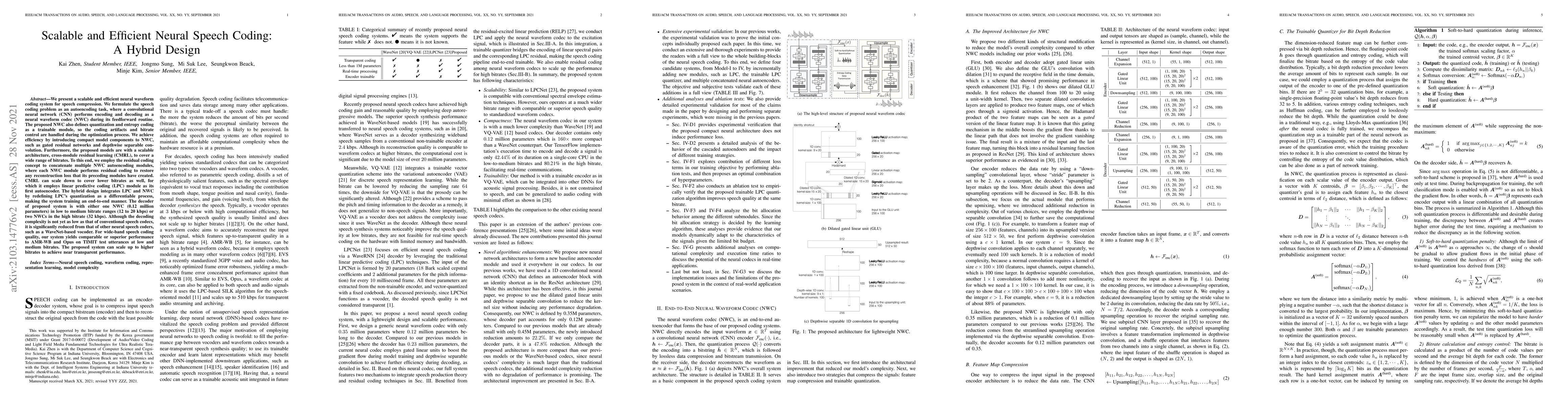 This paper introduces a scalable and efficient neural waveform codec (NWC) for speech compression, combining convolutional neural networks with quantization and entropy coding. The hybrid design integrates linear predictive coding (LPC) and NWC, achieving competitive coding quality at lower bitrates compared to conventional and other neural codecs.