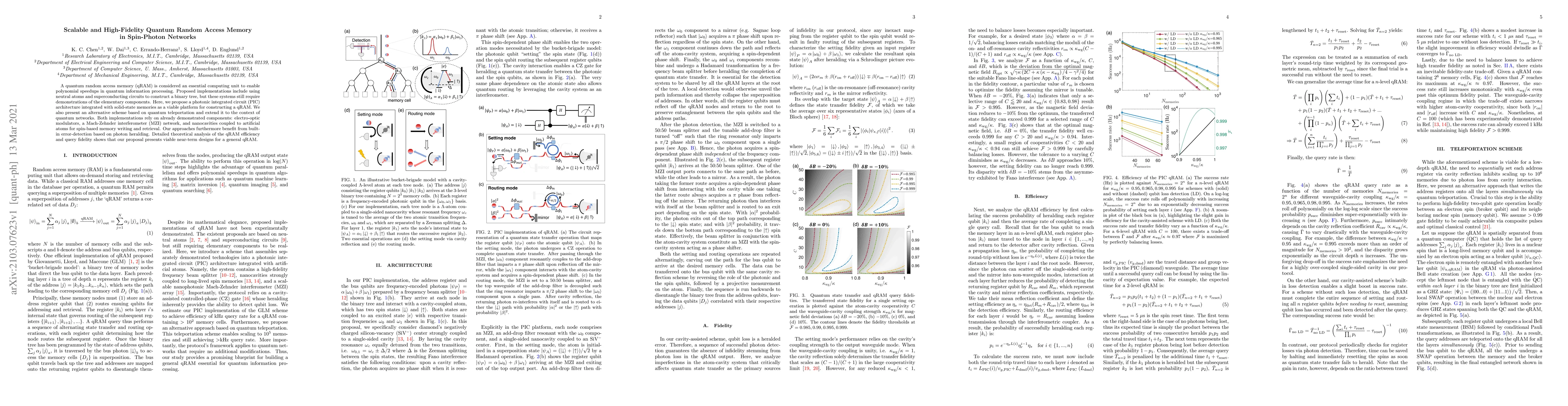 This paper proposes scalable and high-fidelity quantum random access memory (qRAM) architectures using photonic integrated circuits and solid-state memories, leveraging demonstrated components like electro-optic modulators and nanocavities. The study also introduces an alternative scheme based on quantum teleportation for quantum networks, emphasizing error-detection and theoretical efficiency.