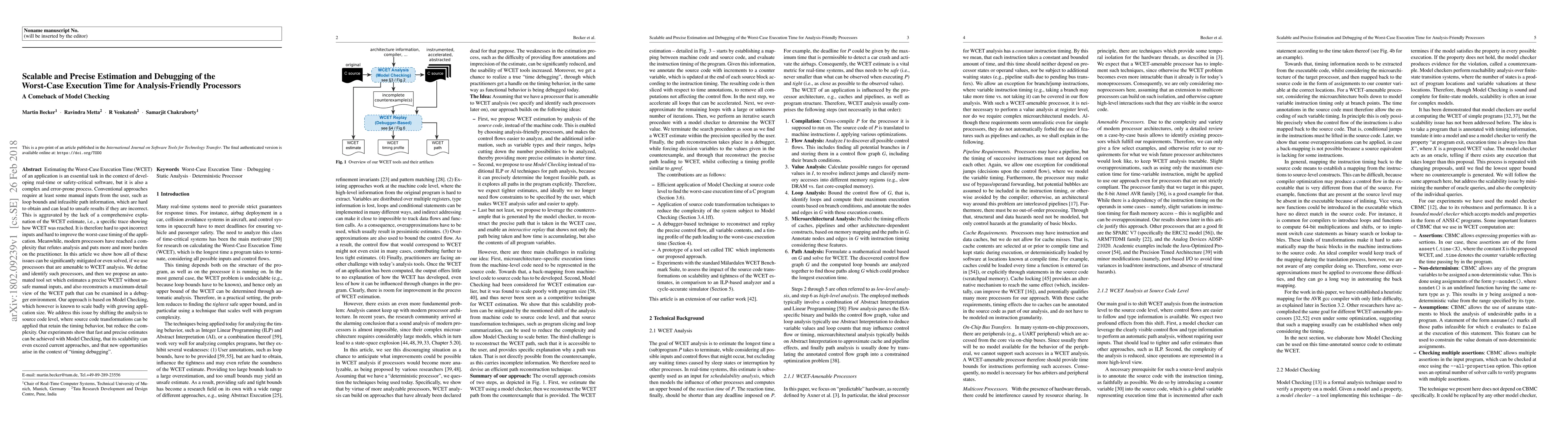 Estimating the Worst-Case Execution Time (WCET) of an application is an essential task in the context of developing real-time or safety-critical software, but it is also a complex and error-prone process. Conventional approaches require at least some manual inputs from the user, such as loop bounds and infeasible path information, which are hard to obtain and can lead to unsafe results if they are incorrect. This is aggravated by the lack of a comprehensive explanation of the WCET estimate, i.e., a specific trace showing how WCET was reached. It is therefore hard to spot incorrect inputs and hard to improve the worst-case timing of the application. Meanwhile, modern processors have reached a complexity that refutes analysis and puts more and more burden on the practitioner. In this article we show how all of these issues can be significantly mitigated or even solved, if we use processors that are amenable to WCET analysis. We define and identify such processors, and then we propose an automated tool set which estimates a precise WCET without unsafe manual inputs, and also reconstructs a maximum-detail view of the WCET path that can be examined in a debugger environment. Our approach is based on Model Checking, which however is known to scale badly with growing application size. We address this issue by shifting the analysis to source code level, where source code transformations can be applied that retain the timing behavior, but reduce the complexity. Our experiments show that fast and precise estimates can be achieved with Model Checking, that its scalability can even exceed current approaches, and that new opportunities arise in the context of "timing debugging".