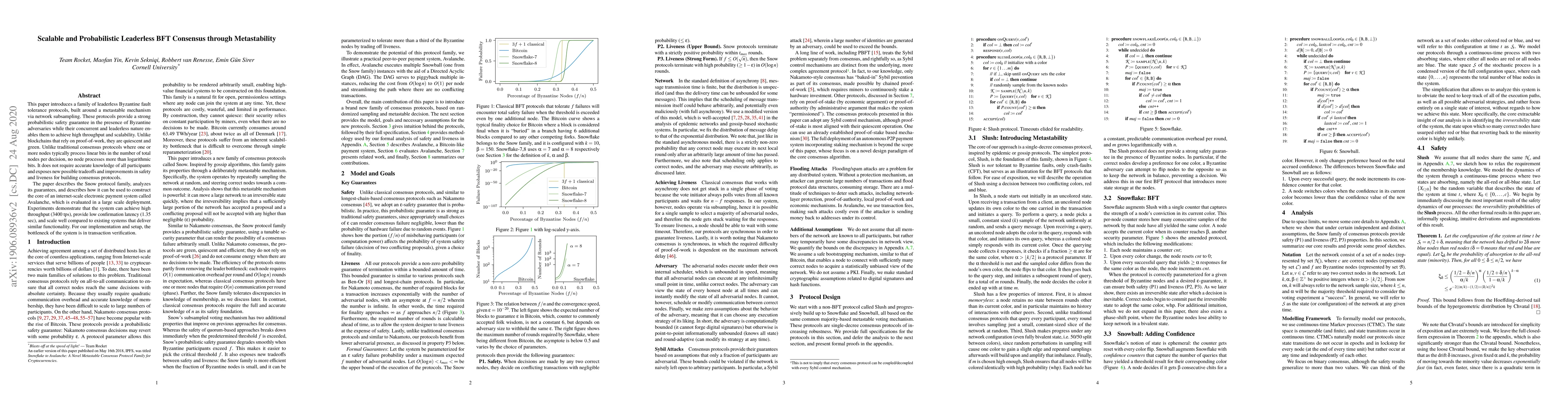 This paper introduces scalable, probabilistic leaderless consensus protocols based on metastability and network subsampling, achieving high throughput and green energy efficiency. The Snow protocol family, evaluated in Avalanche, demonstrates high transaction throughput and low latency, showcasing potential for internet-scale electronic payment systems.