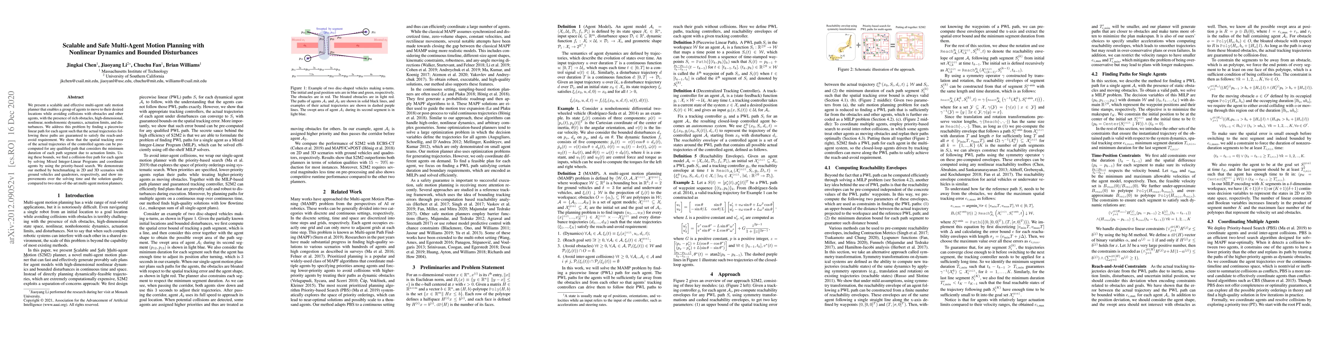 This paper introduces a scalable multi-agent motion planner that ensures safe navigation through complex environments with nonlinear dynamics and disturbances. The method guarantees collision-free paths using piecewise linear approximations and Mixed Integer-Linear Programming, outperforming existing planners in both solving time and solution quality.