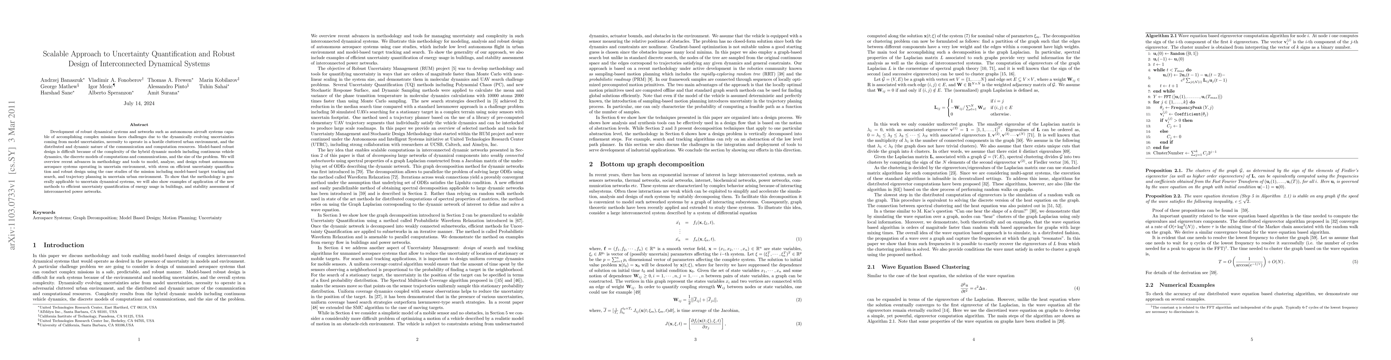 This paper presents scalable methodologies for uncertainty quantification and robust design of complex interconnected dynamical systems, focusing on autonomous aerospace systems. It highlights recent advances in modeling, analysis, and robust design, demonstrating applications in urban environment mission tasks and extending to energy usage in buildings and stability in power networks.