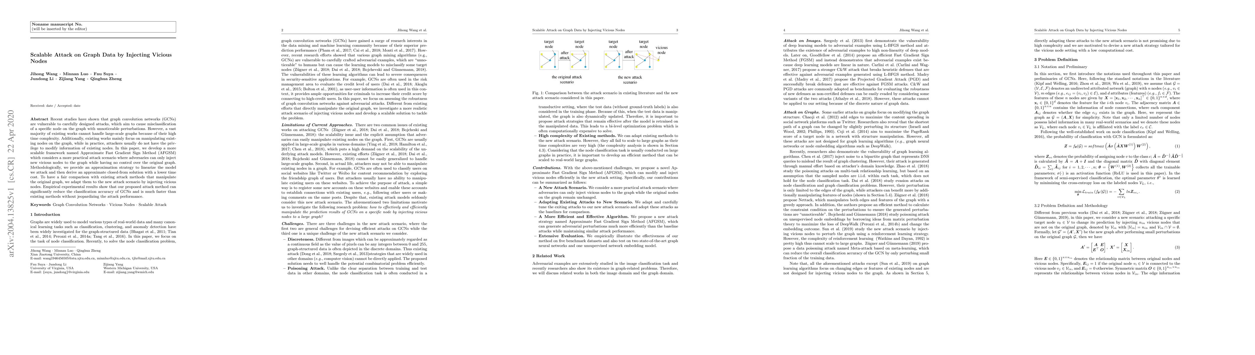This paper introduces a scalable attack method, AFGSM, for large-scale graph data by injecting new vicious nodes, addressing the limitations of existing methods that focus on modifying existing nodes. The proposed method efficiently approximates the graph convolution network model, achieving faster attack speeds while maintaining high effectiveness.
