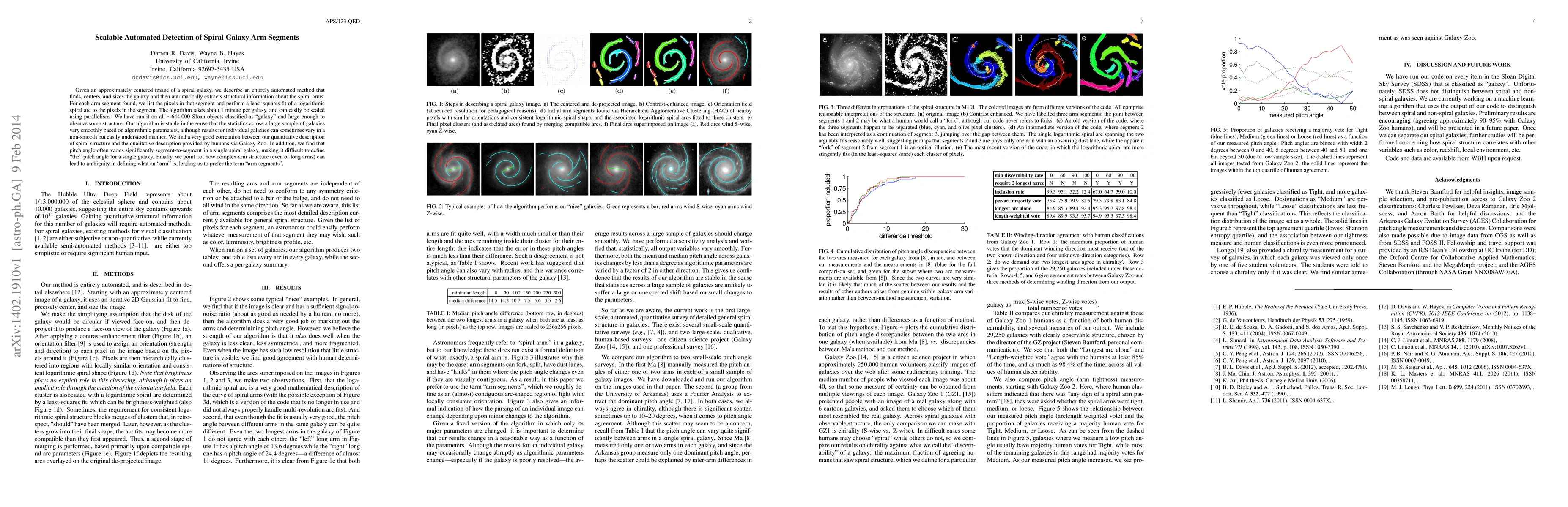 Given an approximately centered image of a spiral galaxy, we describe an entirely automated method that finds, centers, and sizes the galaxy and then automatically extracts structural information about the spiral arms. For each arm segment found, we list the pixels in that segment and perform a least-squares fit of a logarithmic spiral arc to the pixels in the segment. The algorithm takes about 1 minute per galaxy, and can easily be scaled using parallelism. We have run it on all ~644,000 Sloan objects classified as "galaxy" and large enough to observe some structure. Our algorithm is stable in the sense that the statistics across a large sample of galaxies vary smoothly based on algorithmic parameters, although results for individual galaxies can sometimes vary in a non-smooth but easily understood manner. We find a very good correlation between our quantitative description of spiral structure and the qualitative description provided by humans via Galaxy Zoo. In addition, we find that pitch angle often varies significantly segment-to-segment in a single spiral galaxy, making it difficult to define "the" pitch angle for a single galaxy. Finally, we point out how complex arm structure (even of long arms) can lead to ambiguity in defining what an "arm" is, leading us to prefer the term "arm segments".
