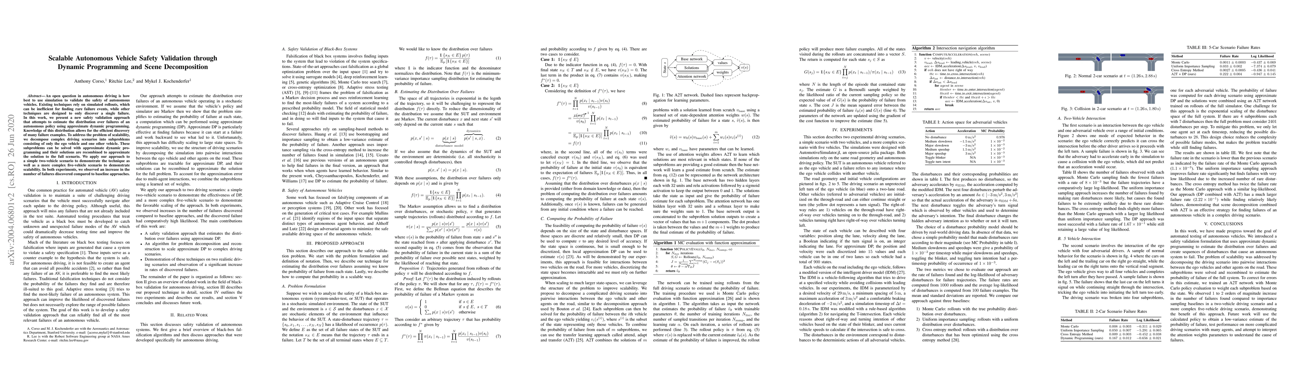 This paper presents a scalable safety validation method for autonomous vehicles using dynamic programming and scene decomposition. The method efficiently estimates failure distributions and discovers multiple failure events, significantly outperforming baseline techniques in both simple and complex scenarios.